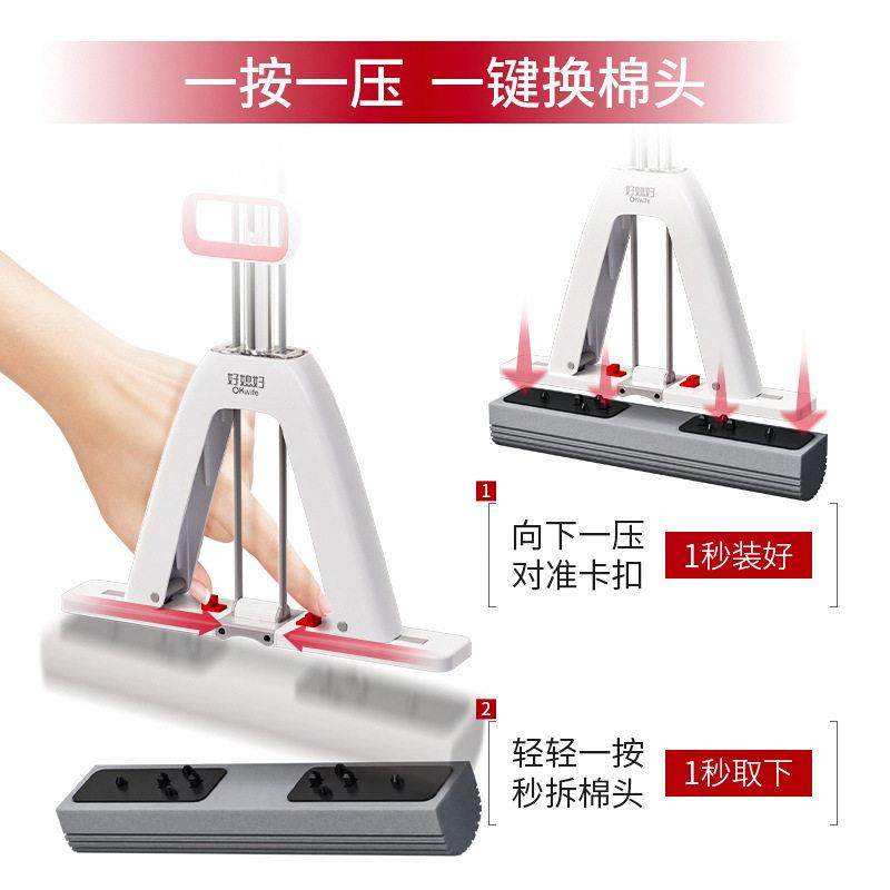 好媳妇对折拖把大号胶棉家用客厅吸水海绵一拖净懒人拖布2025新款