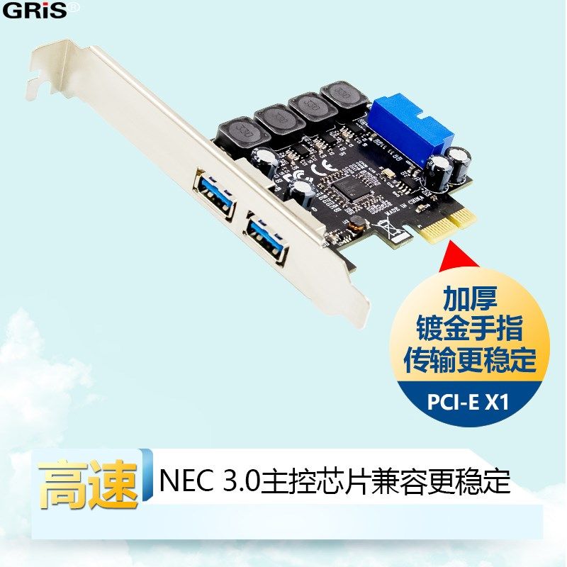 机电脑19p前置面板连接线 E转USB3.0扩展卡NEC台式 GRIS 免供电PCI