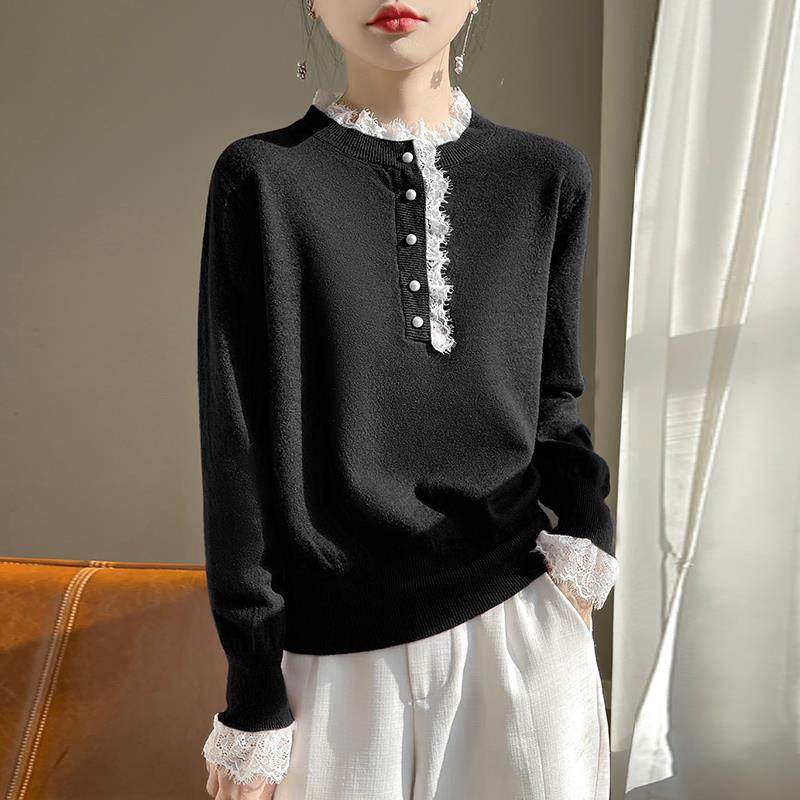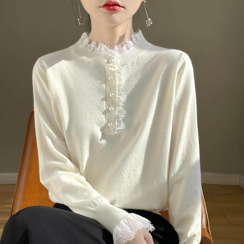 木耳边蕾丝花边洋气高领针织衫 洋气毛衣1219e 秋冬内搭打底衫