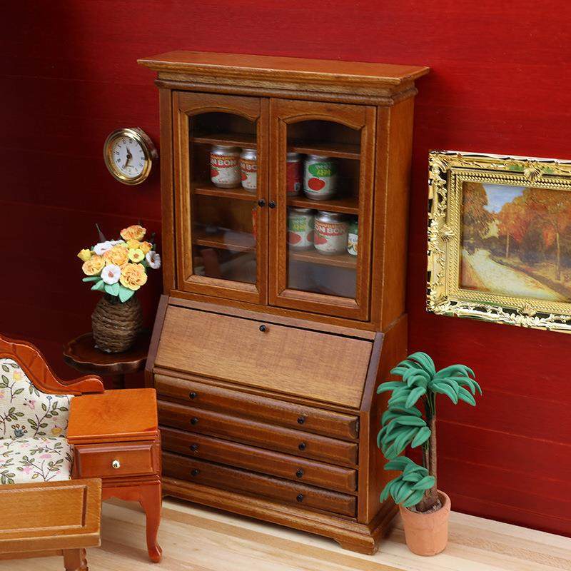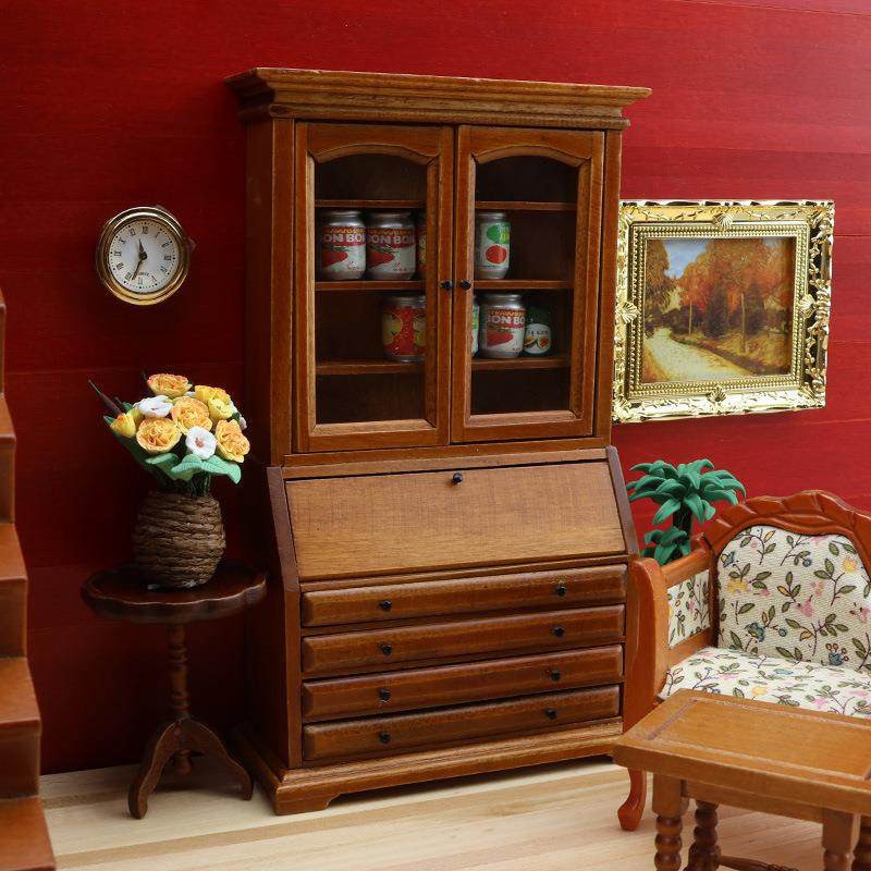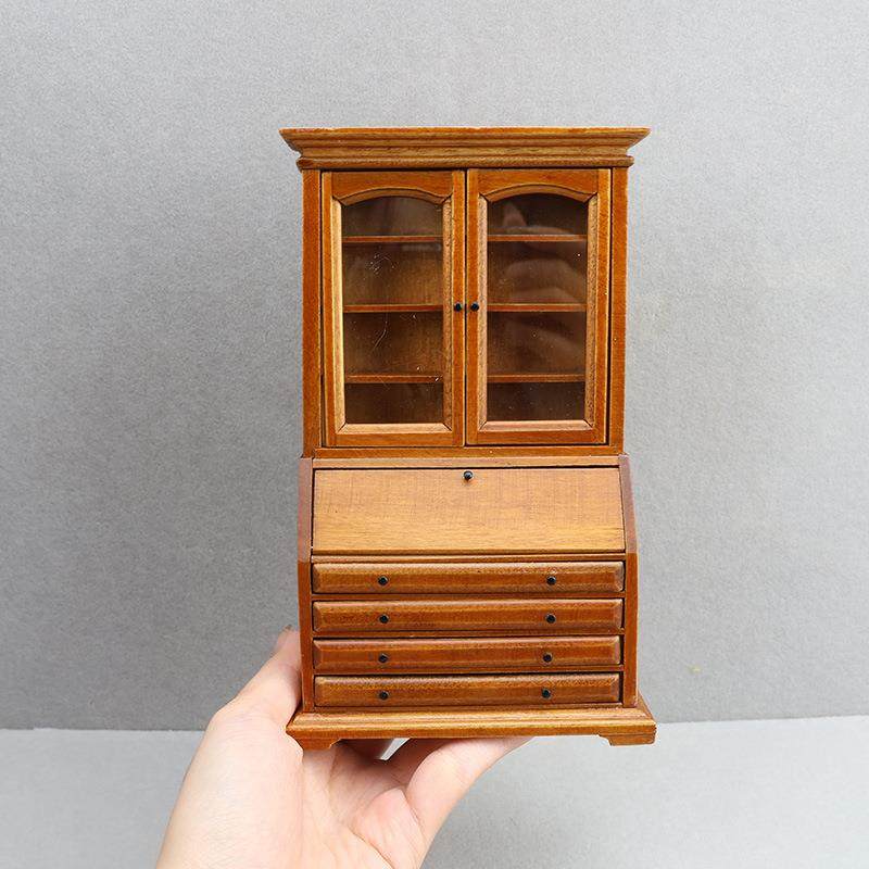 12娃娃屋dollhouse微缩家具迷你小家居食玩场景摆件木质书柜子