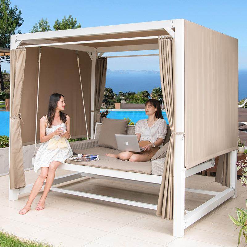 度假酒店户外秋千躺床北欧泳池躺椅室外秋千摇椅双人藤椅庭院秋千