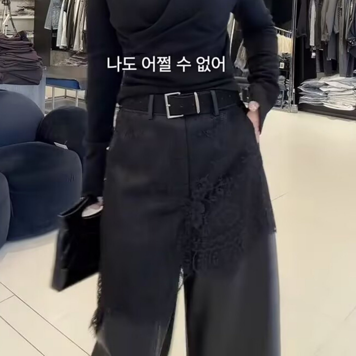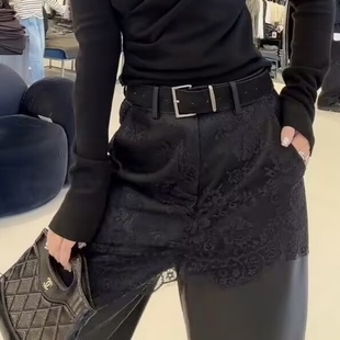 阔腿裤 气质百搭蕾丝拼接屁帘宽松九分加绒直筒休闲裤 时尚 2025冬季