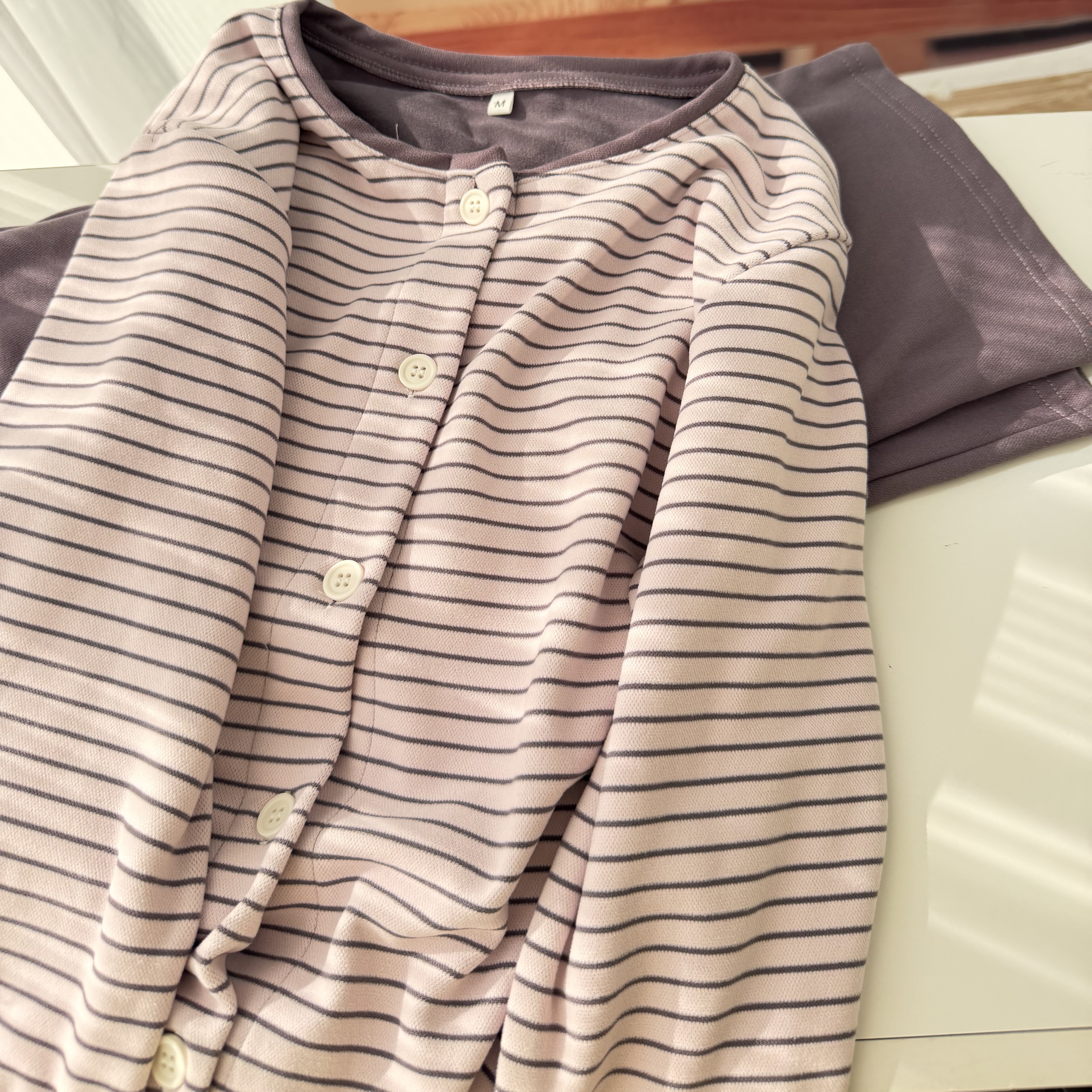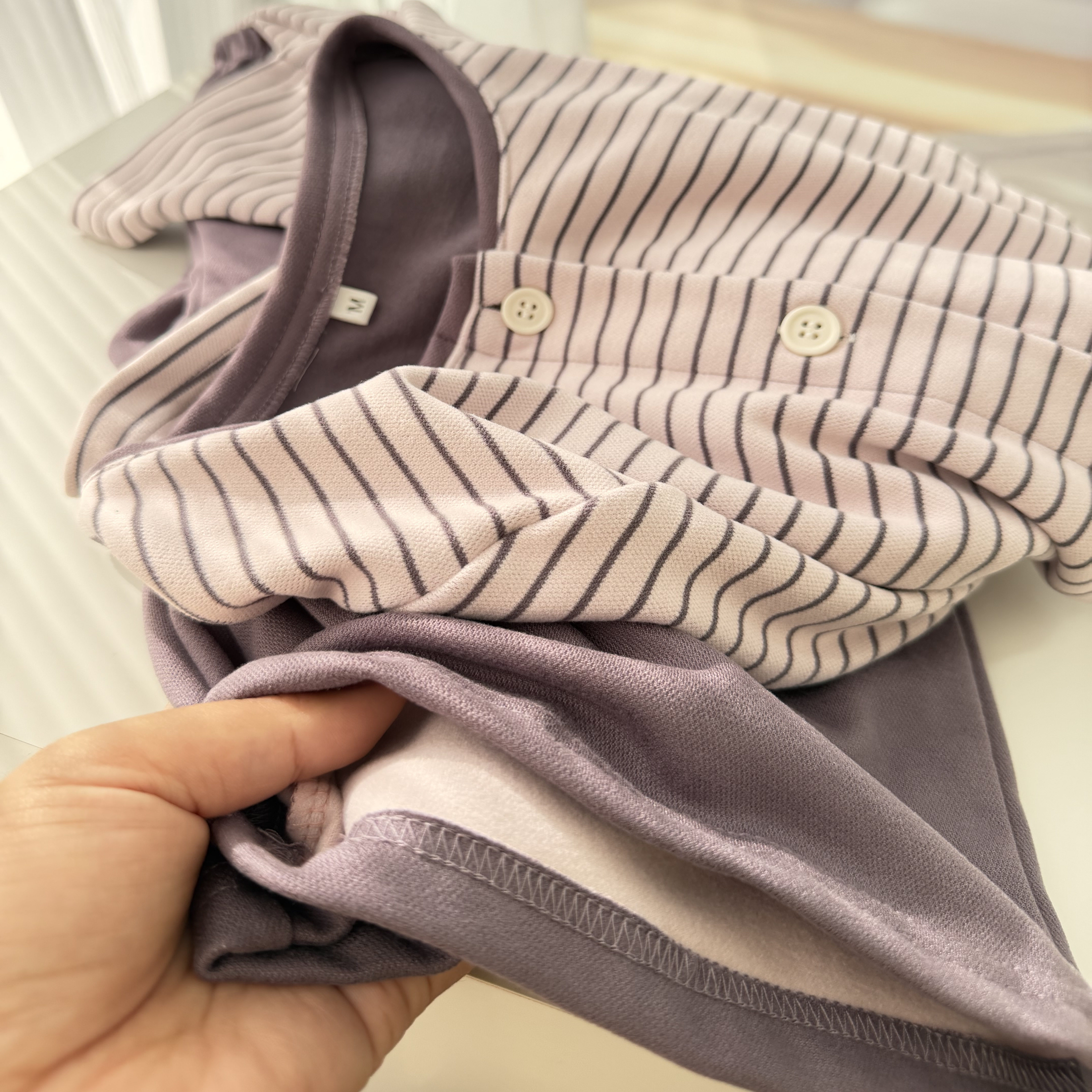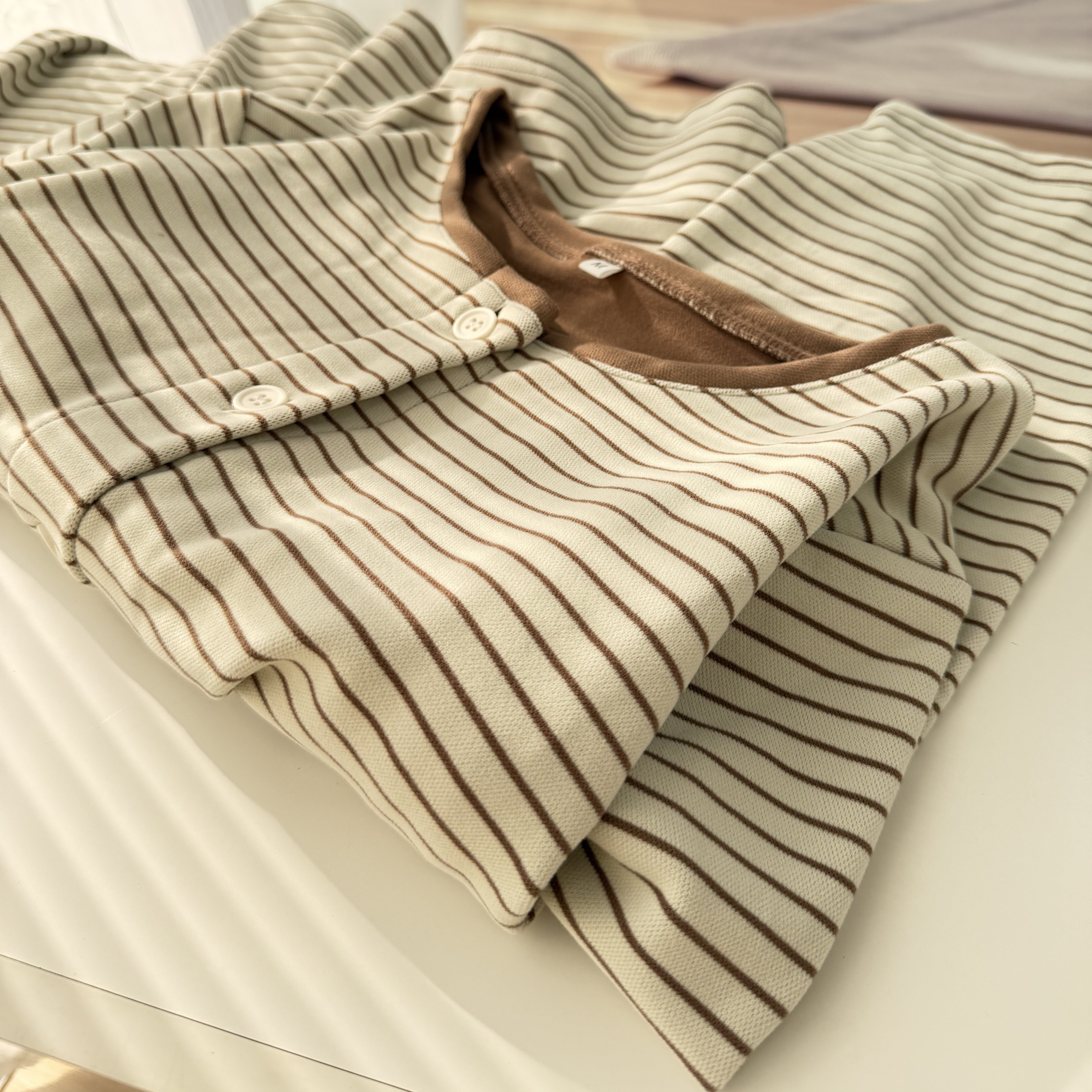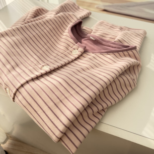 德绒加厚保暖加绒长袖 秋冬季 上衣软糯家居服 女款 简约条纹睡衣上装