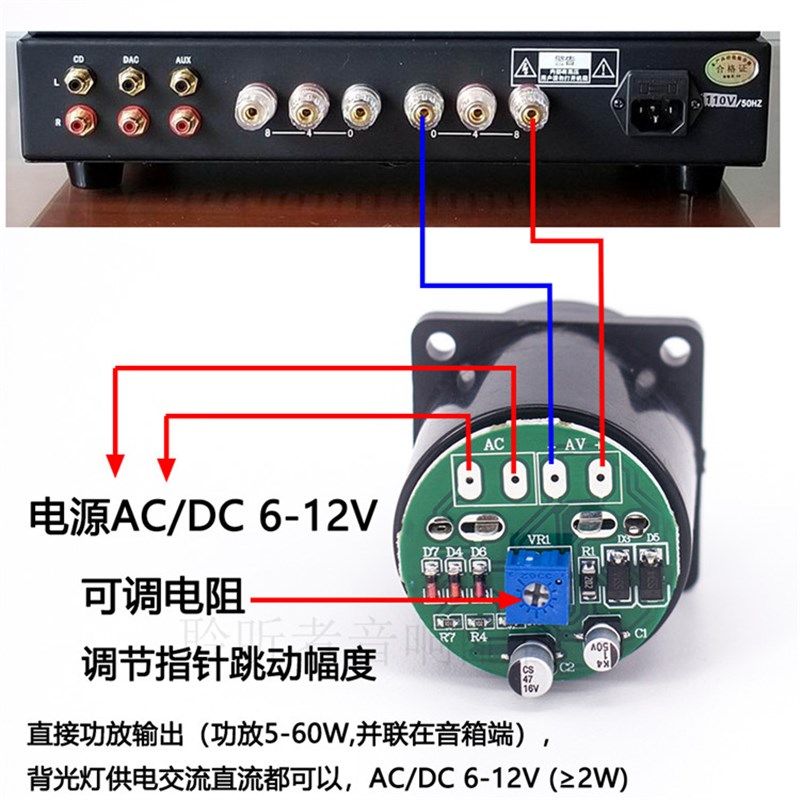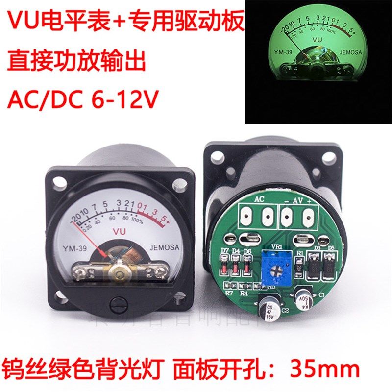 35mmVU电平表头配驱动板功放输出 前后级功率表胆机机箱表头500VU