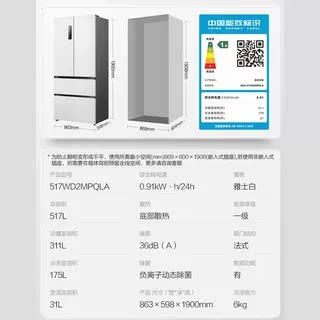 法式 517WD2MPQLA 多门嵌入冰箱家用超薄变频无霜等级机 BCD 容声