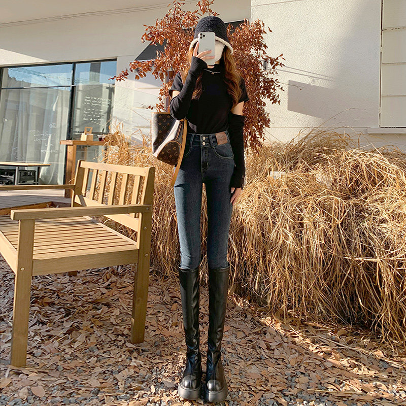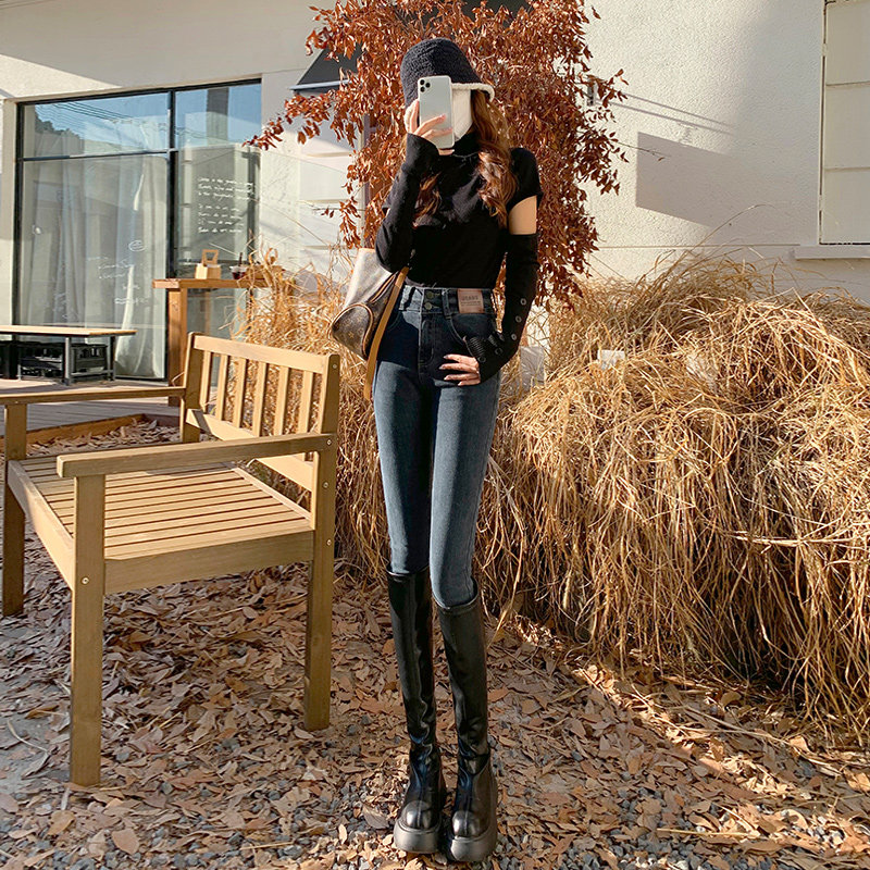 显瘦裤 加绒保暖修身 子 新款 逸阳不易掉色微喇牛仔女九分2025年冬季