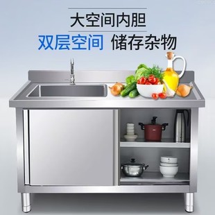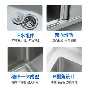 厨房304不锈钢水槽柜子落地式 厨房橱柜不锈钢水池柜洗手池碗碟柜