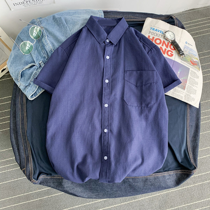 新款 潮流情侣五分短袖 纯色半袖 男生韩版 打底衬衣 翻领衬衫 2021夏季