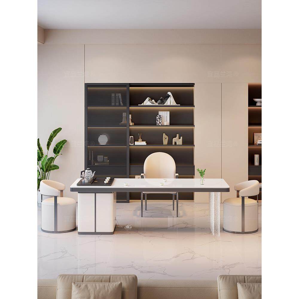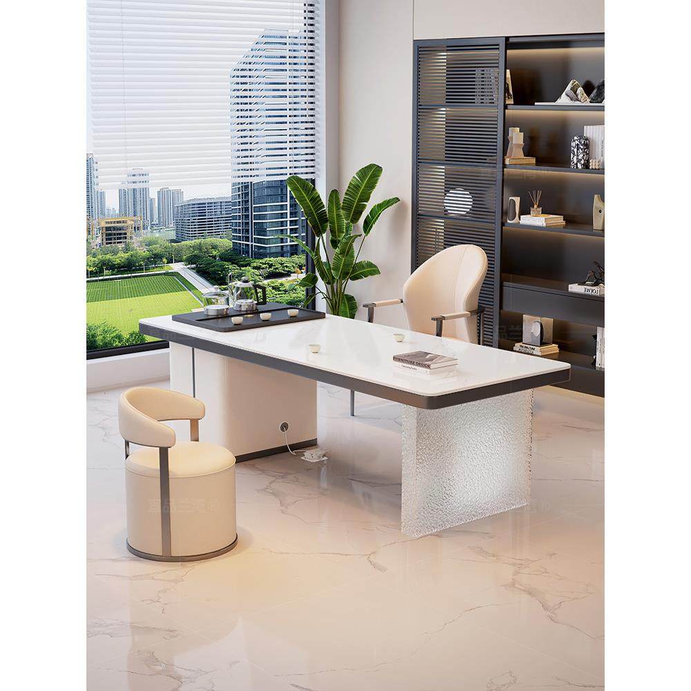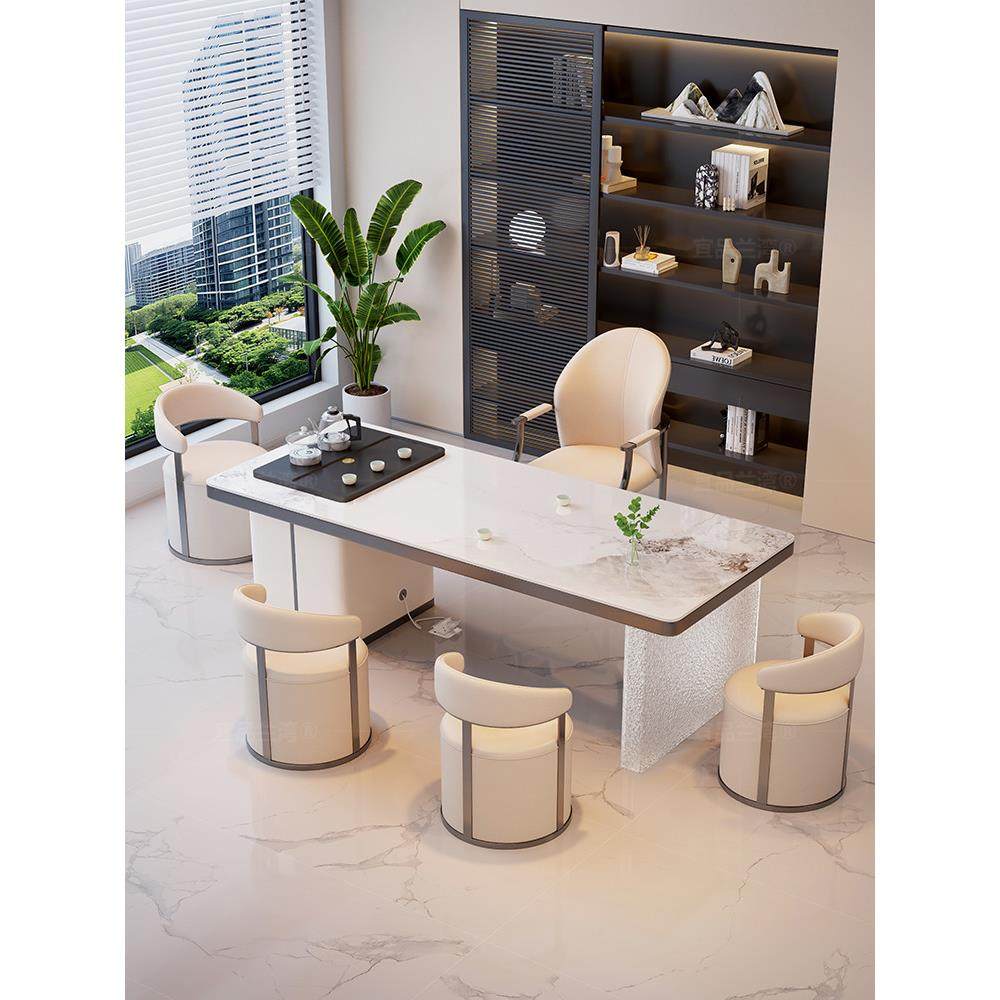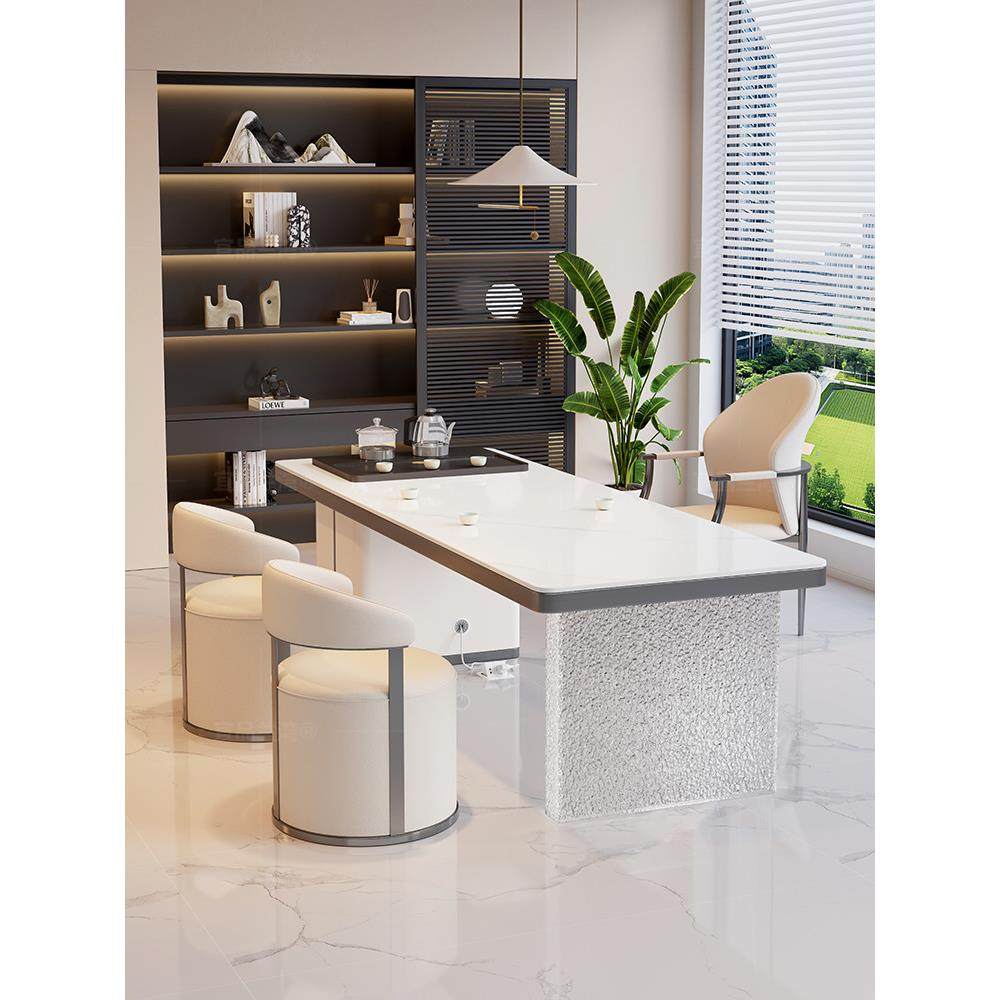 2025新款 办公室泡茶台 高端亚克力岩板茶桌椅组合烧水壶一体嵌入式