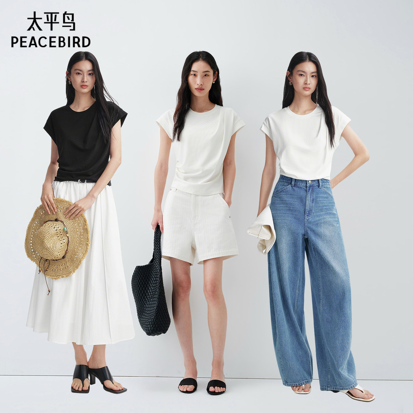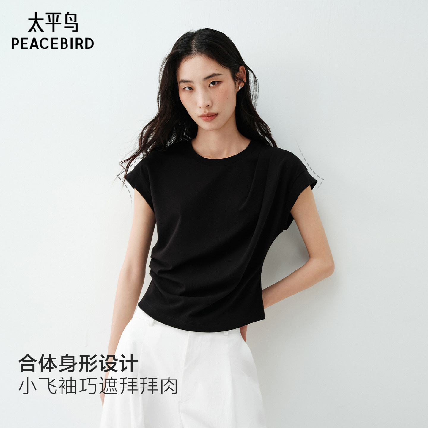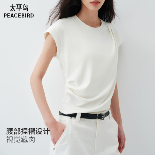 5A抗菌 小飞袖 太平鸟一片式 T恤26夏新款 上衣 腰部捏褶显瘦短袖