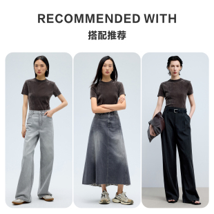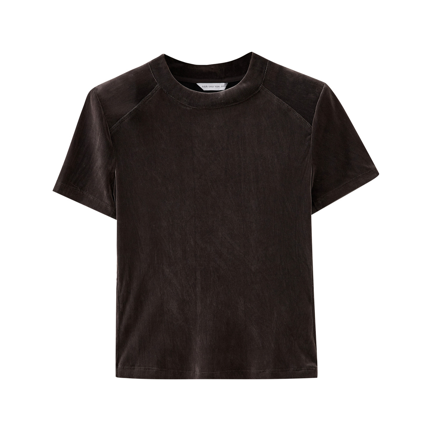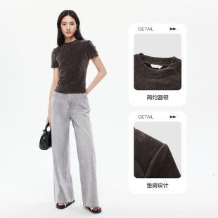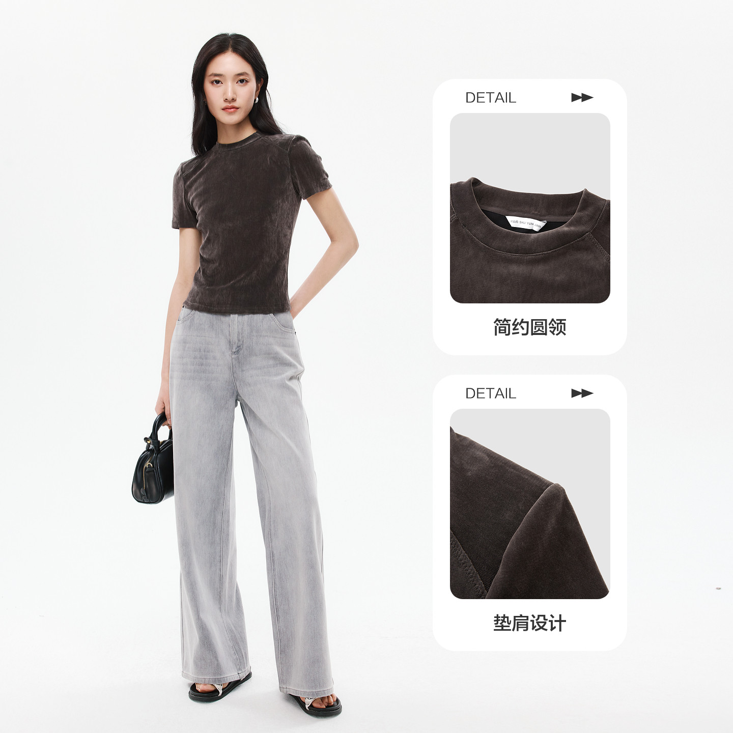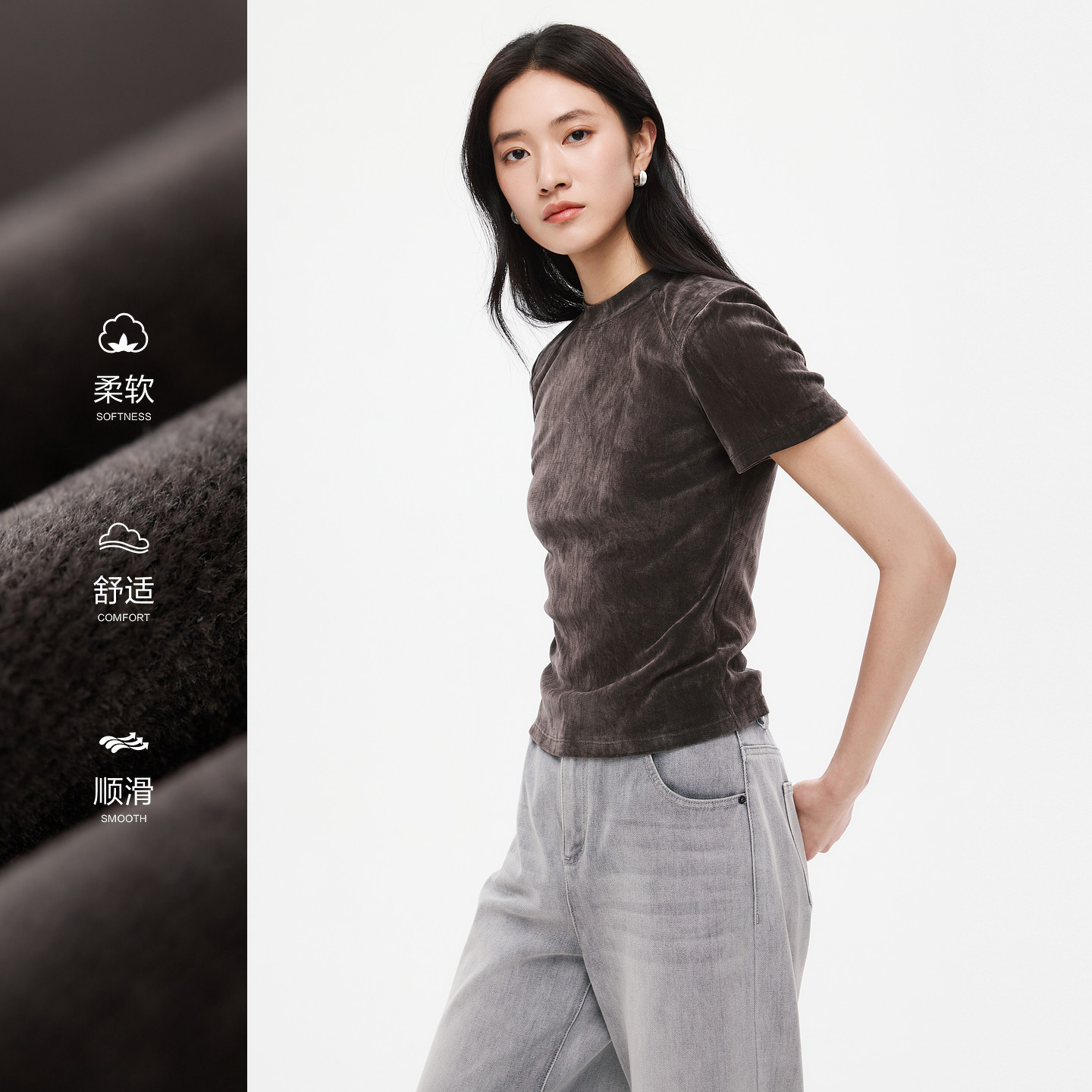2026春新款 水云间丝绒短款 显瘦小衫 T恤正肩修身 上衣女深灰色短袖