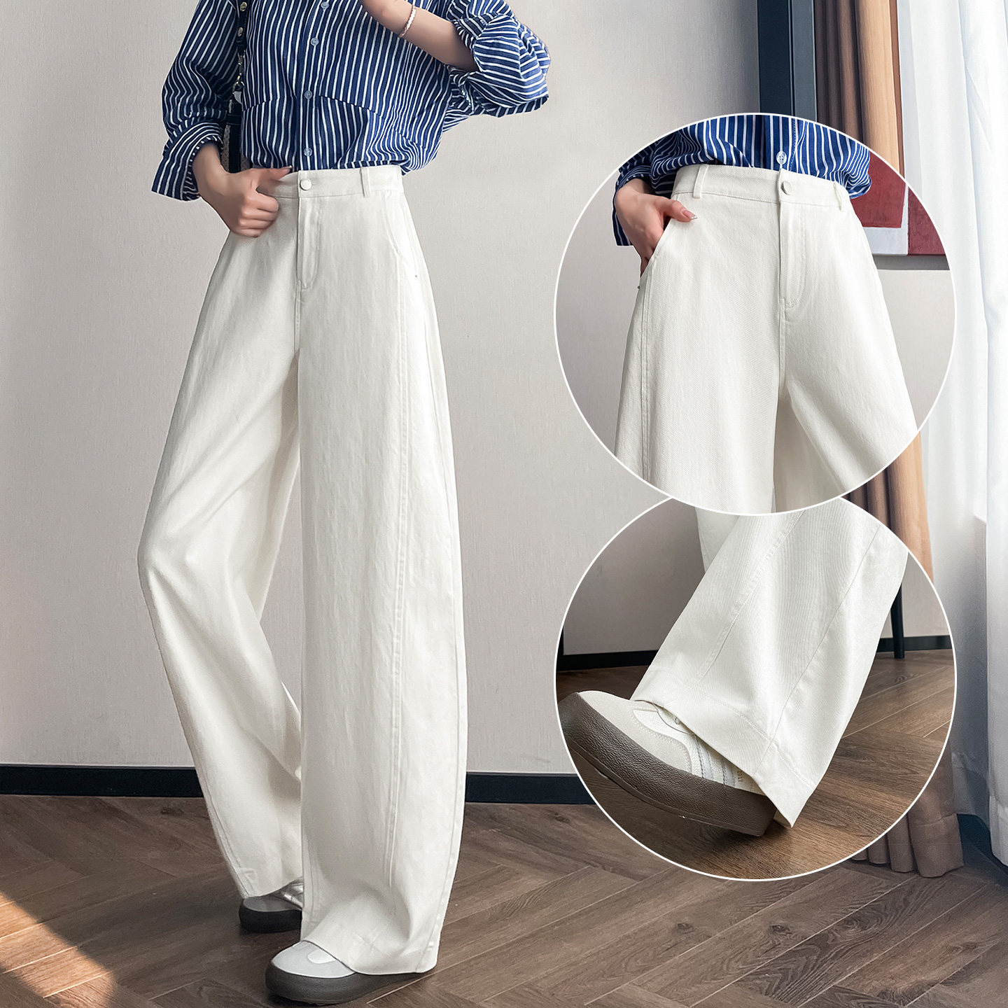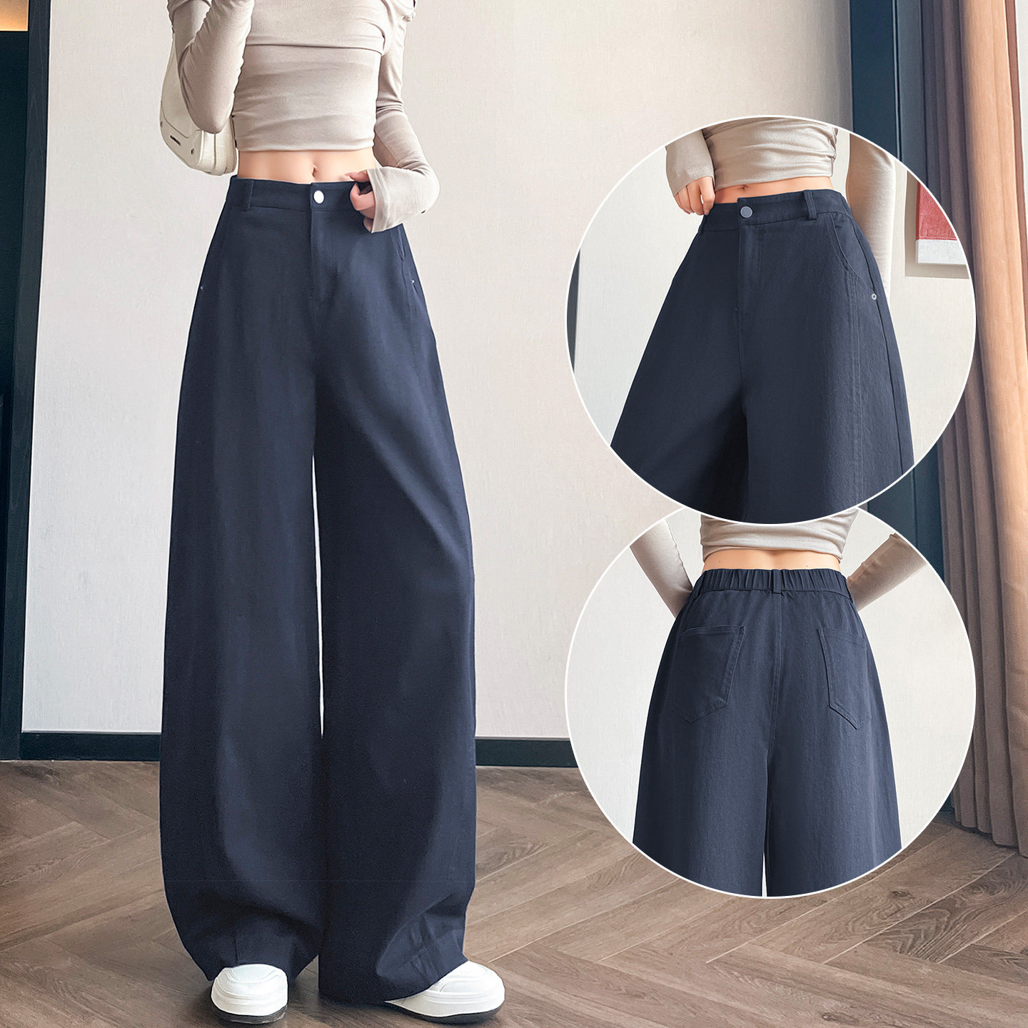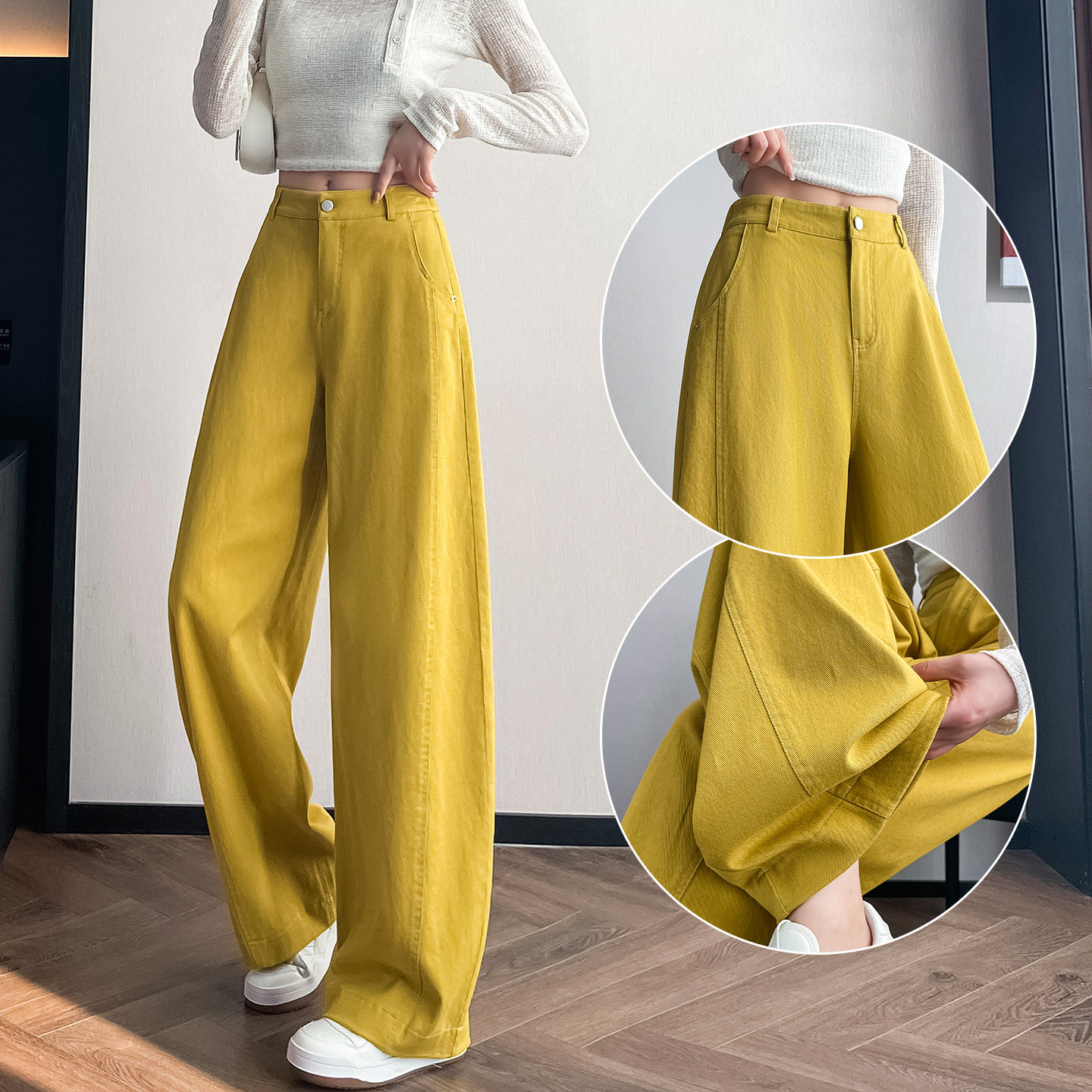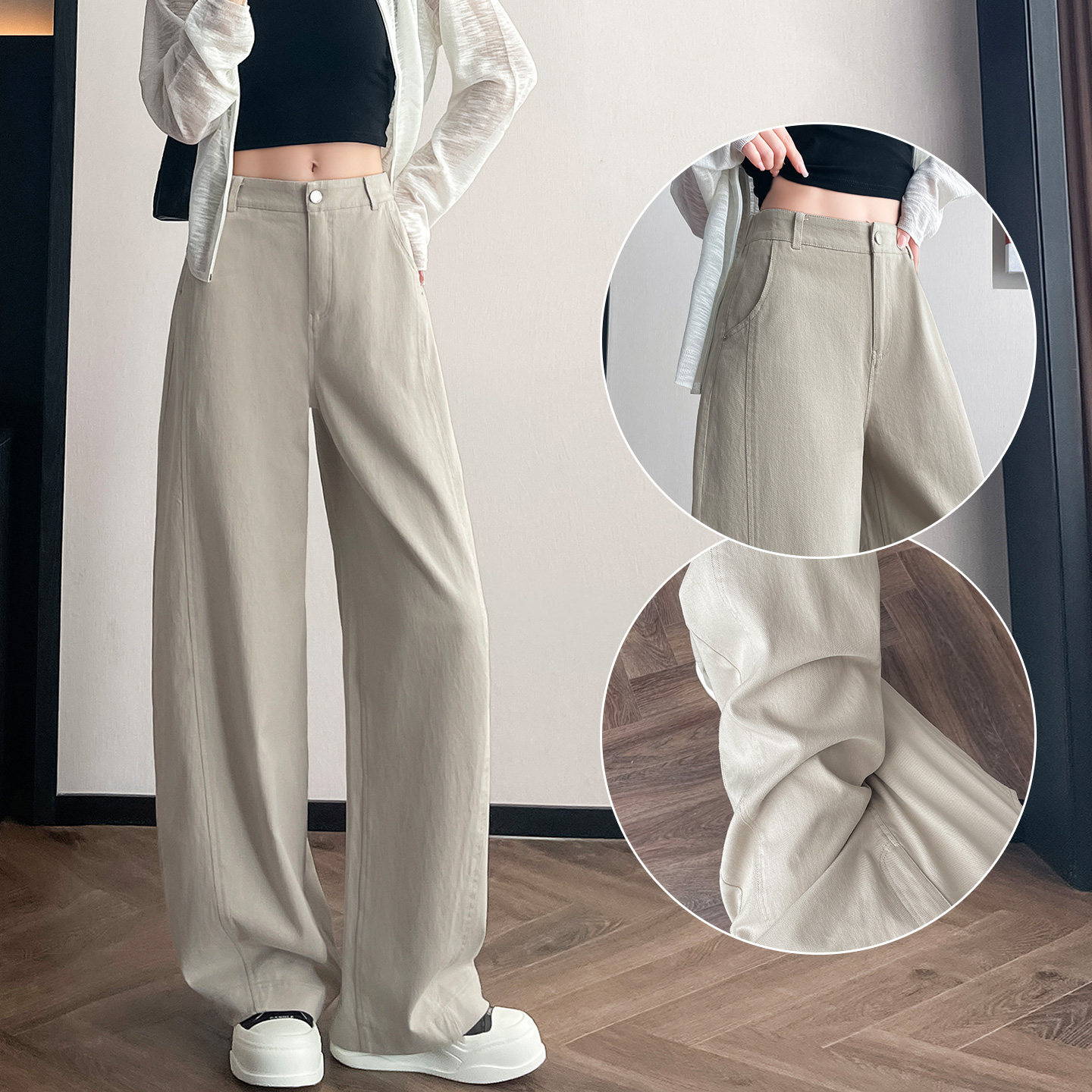 高腰垂感直筒休闲香蕉镰刀牛仔裤 卡其色弯刀阔腿裤 女春秋2026新款