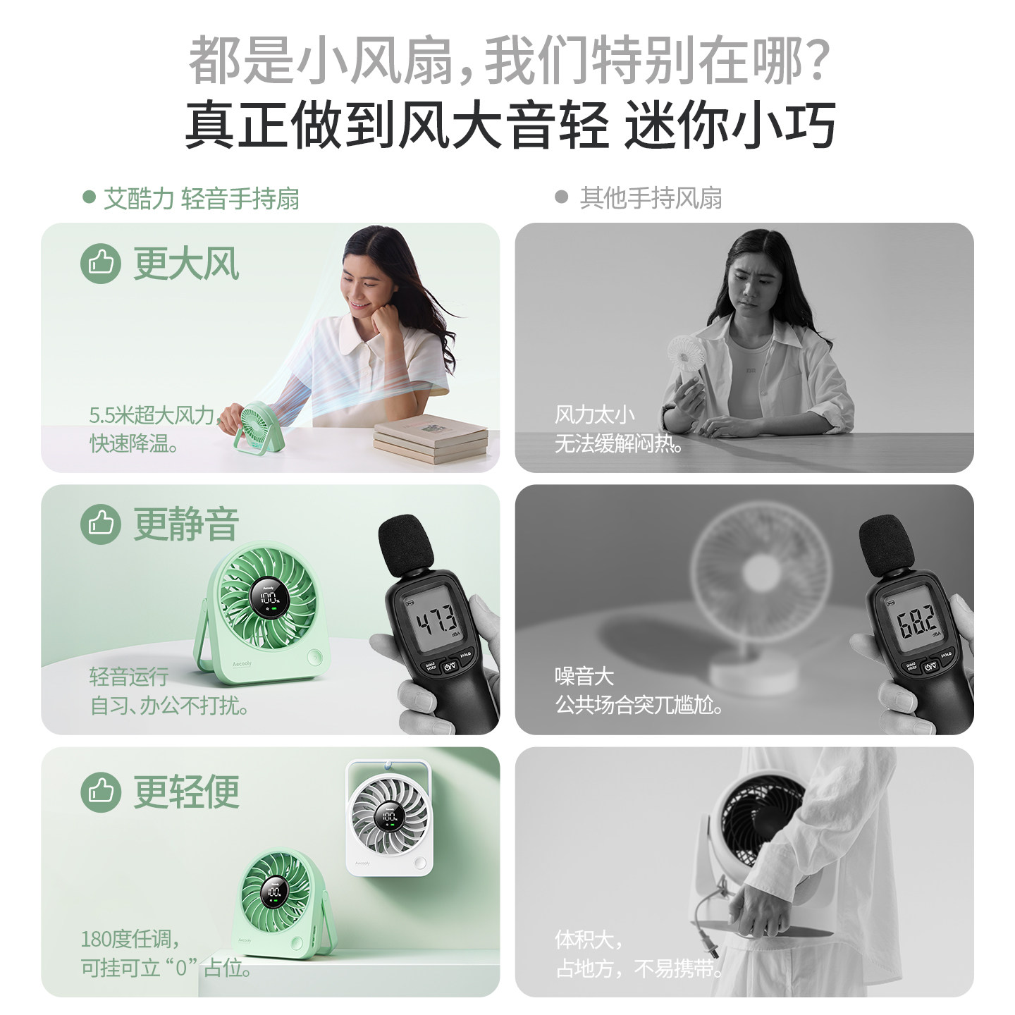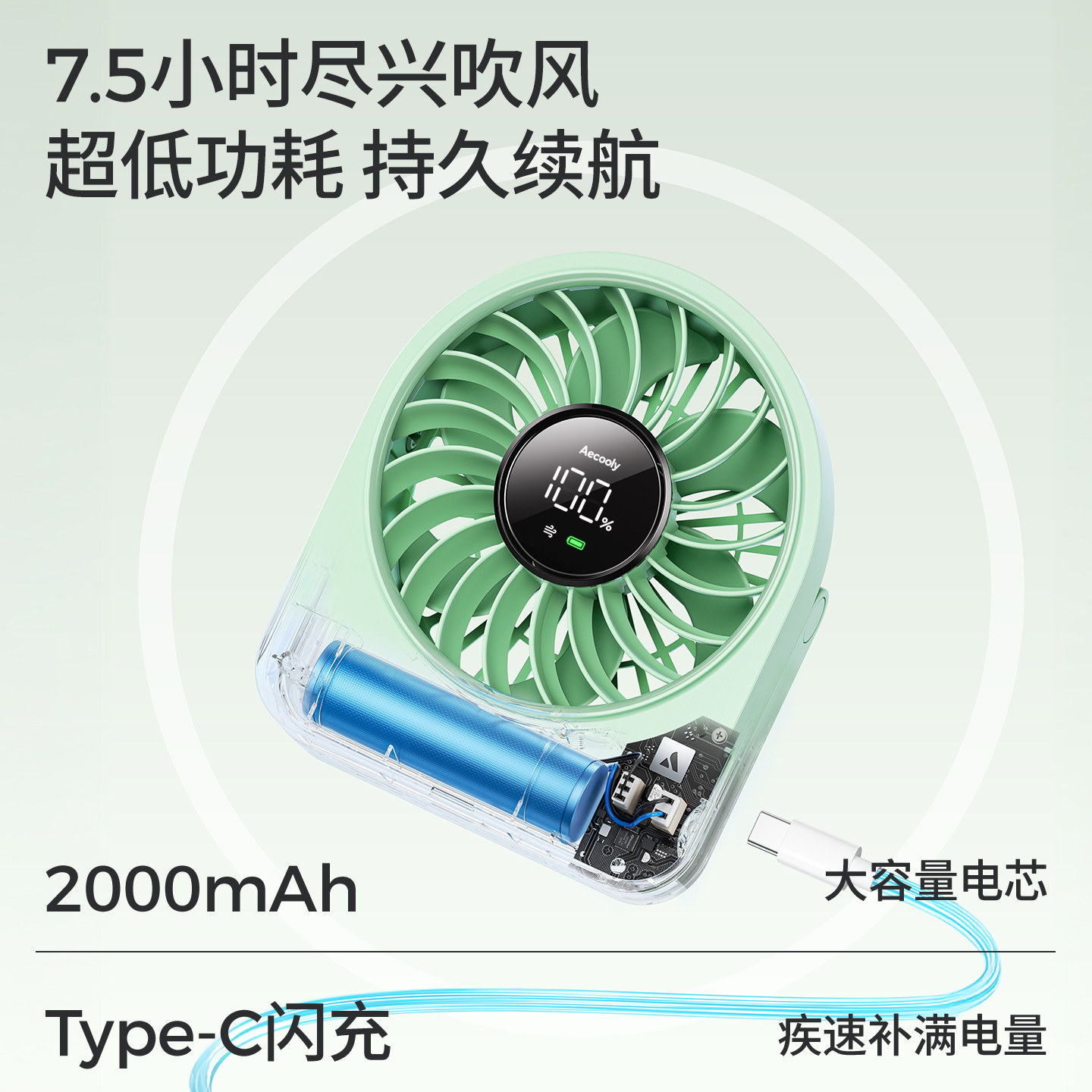 艾酷力元 挂立型充电usb电风扇床头手持长时间续航吹辅食儿童无声 气桌面小风扇迷你静音办公室学生宿舍便携式