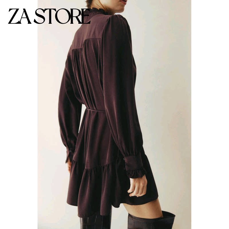 新款 褶边连衣裙 女装 蝴蝶结系带饰短款 1329230 V领灯笼长袖 春季