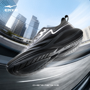 夏季 男鞋 新款 黑色厚底跑步鞋 软底减震运动鞋 乘风4鸿星尔克男跑鞋