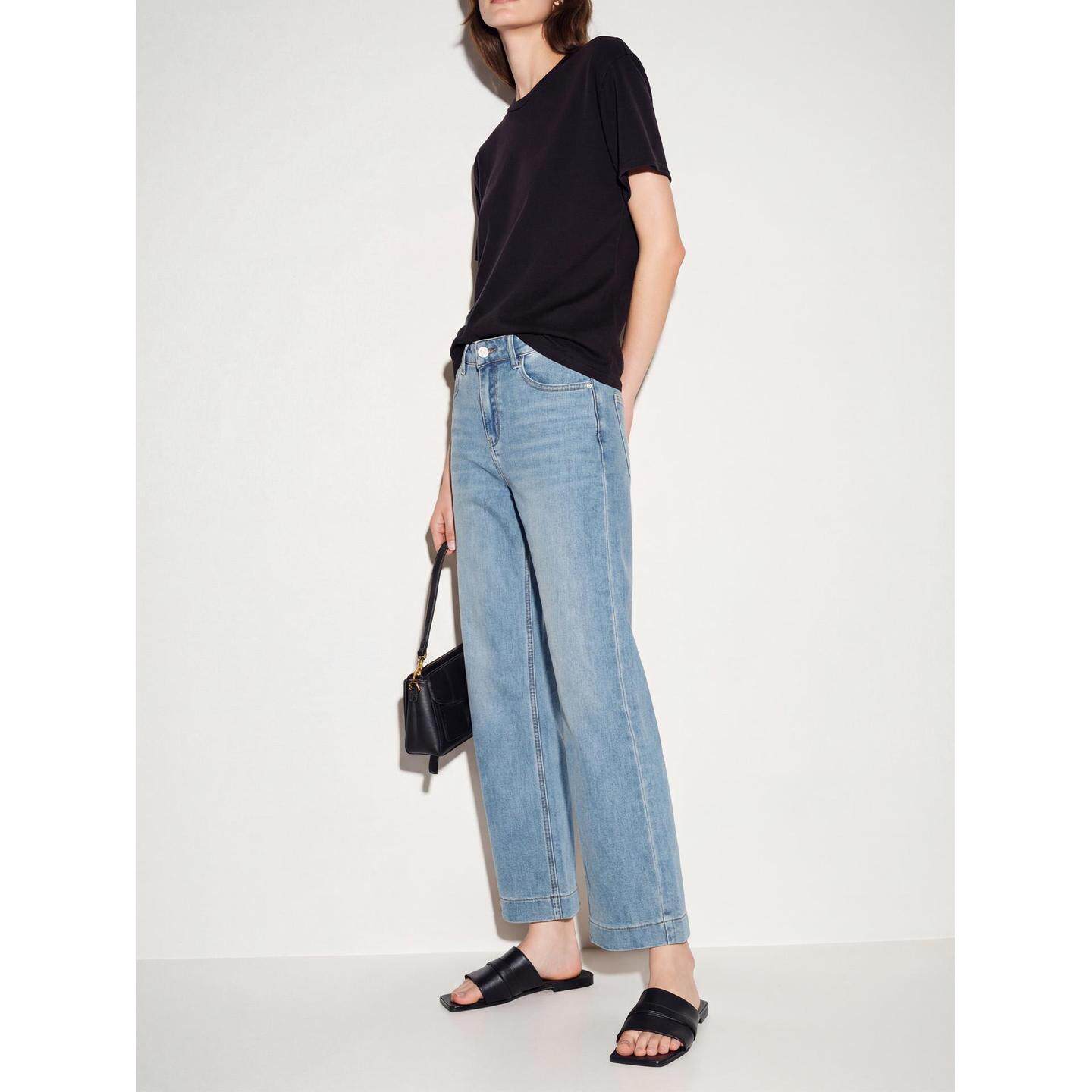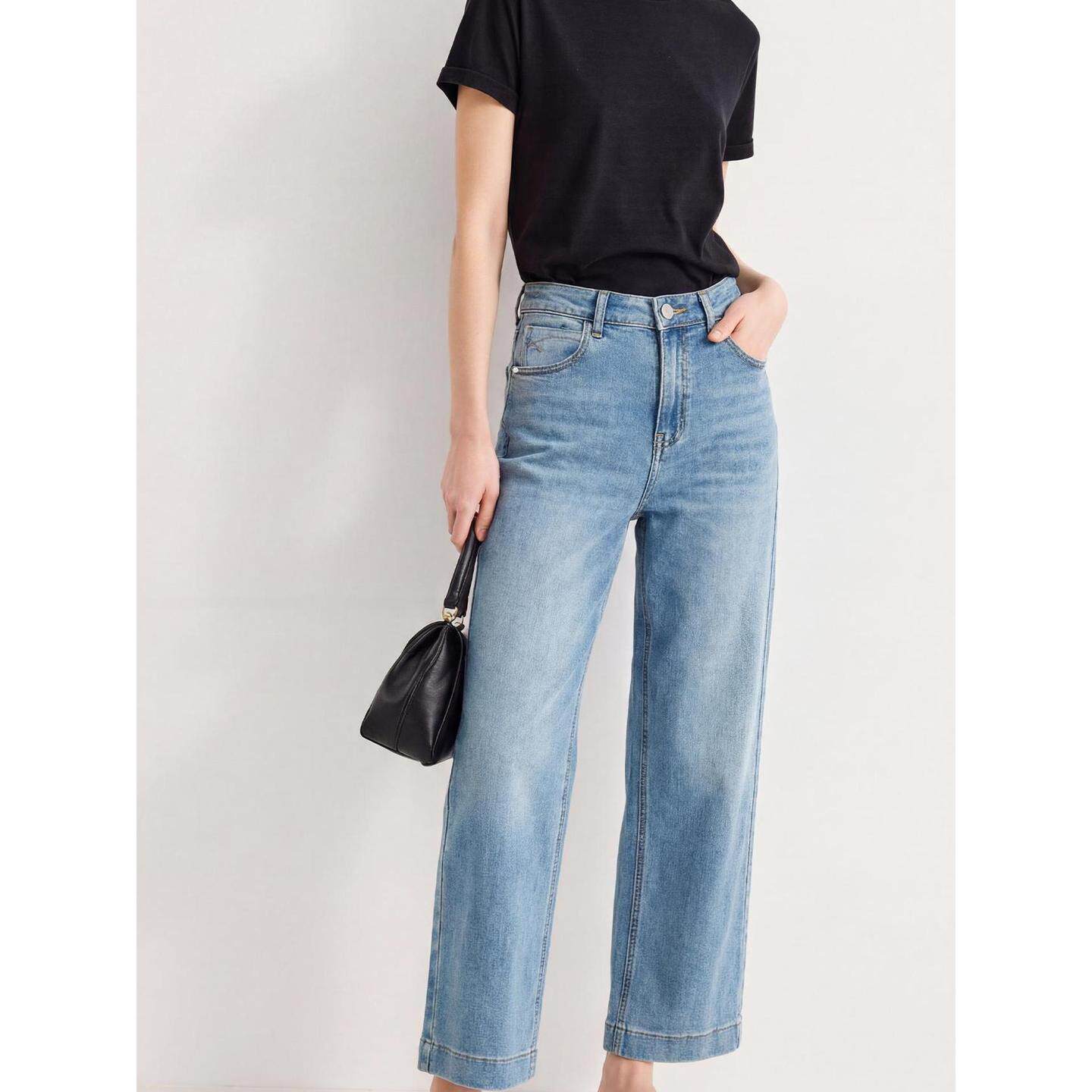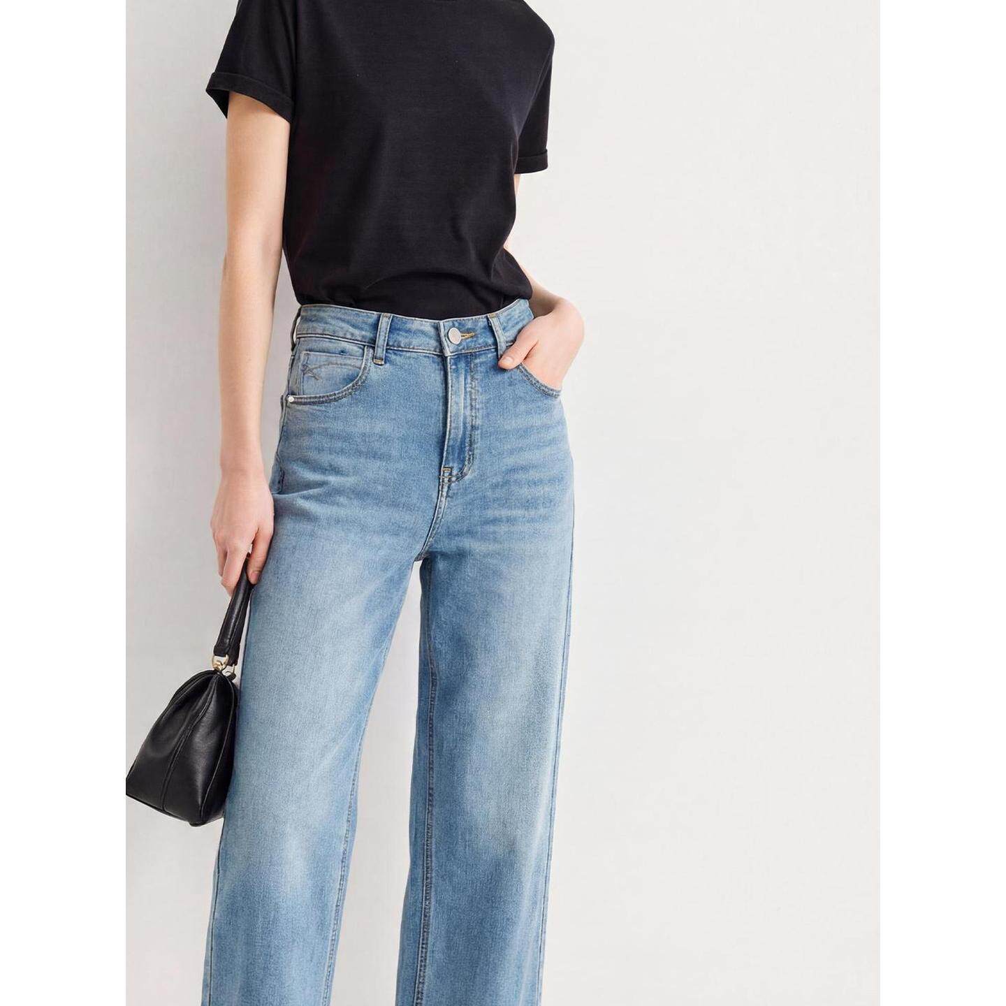 休闲直筒阔腿裤 Basic 女士2026春季 百家好浅蓝色宽松牛仔裤 House