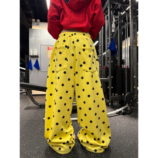 男女宽松休闲百搭直筒拖地长裤 复古波点满印加绒阔腿卫裤 美式 JMJ
