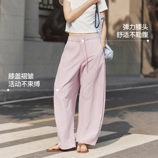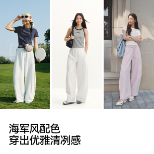 长裤 森马休闲裤 26新款 宽松阔腿裤 女夏防晒吸湿速干肌理分割弯刀裤