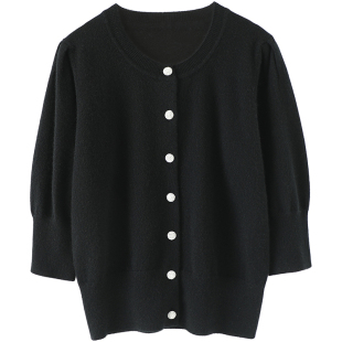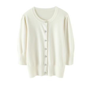 纯羊绒毛衣针织开衫 女七分袖 秋冬 钻扣圆领山羊绒开衫 美得很轻松