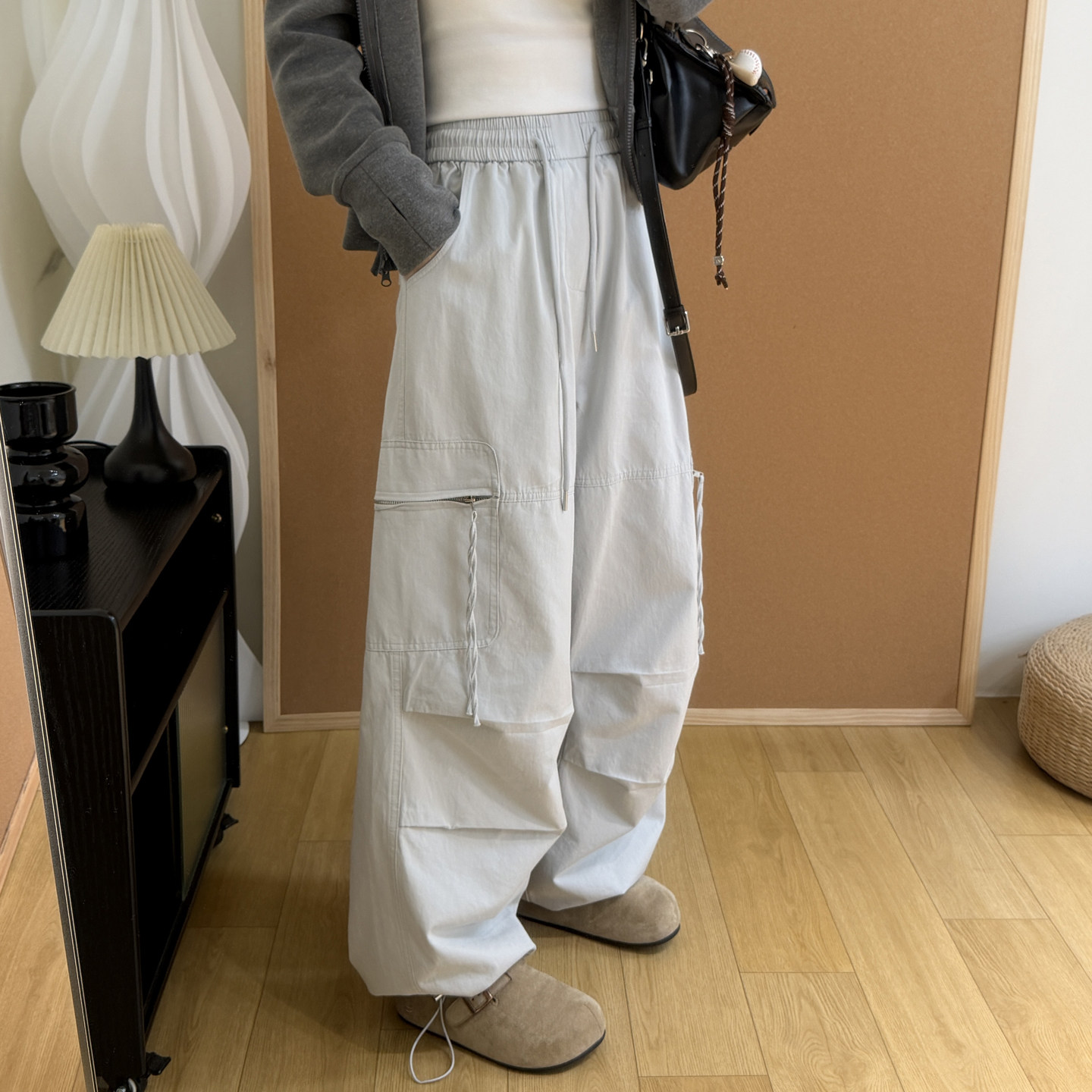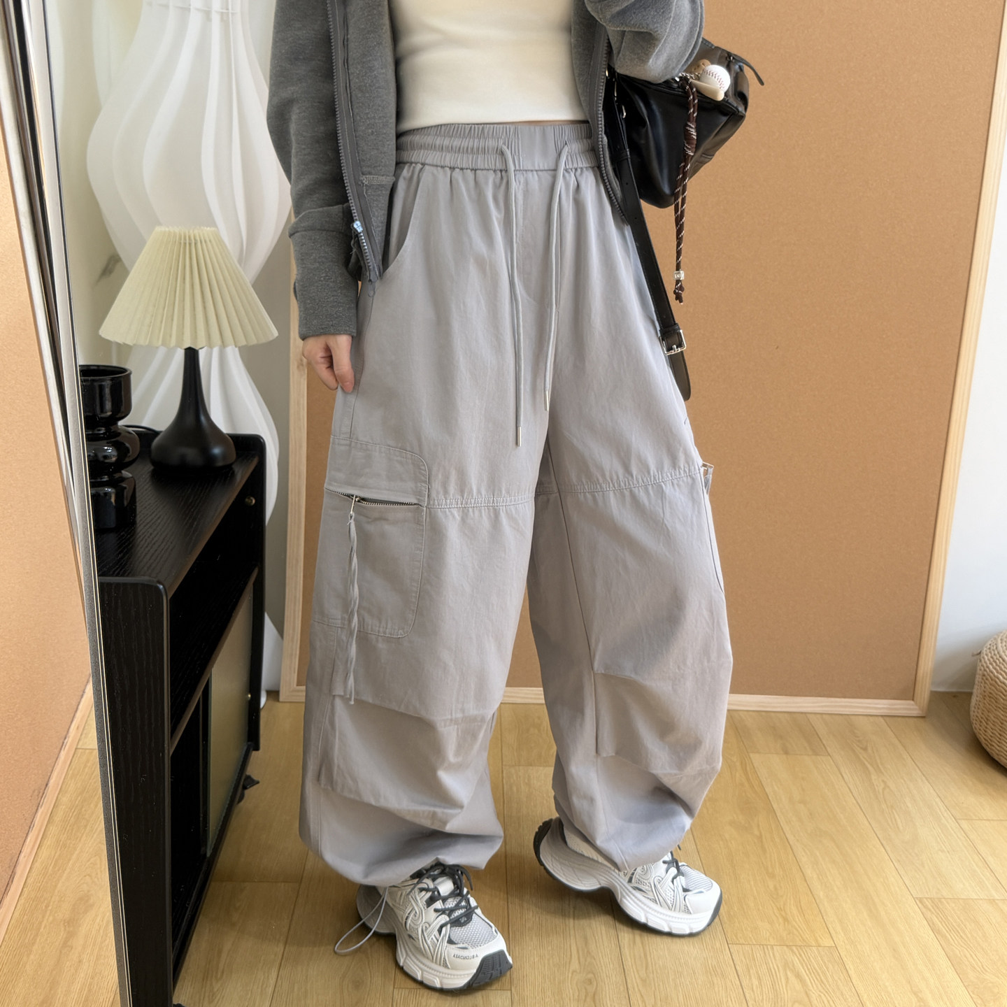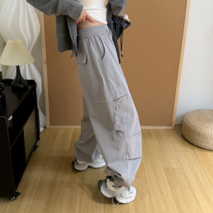 运动风抽绳可收口阔腿束脚两穿休闲长裤 早春工装 美式 女2026新款 裤