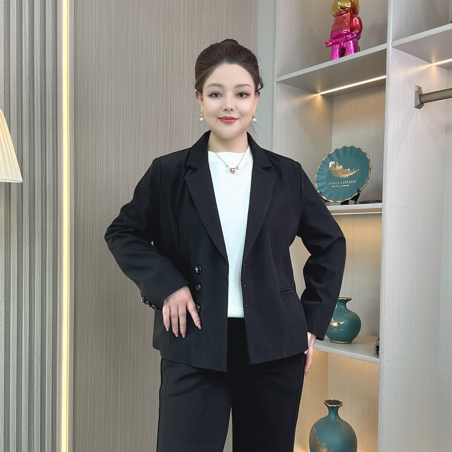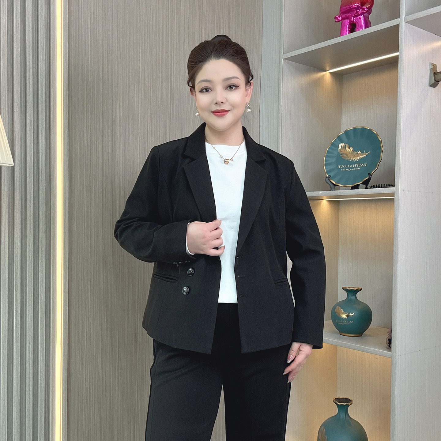 面试正装 胖mm春秋2026新款 通勤百搭气质小西服 外套女大码 蓝色西装