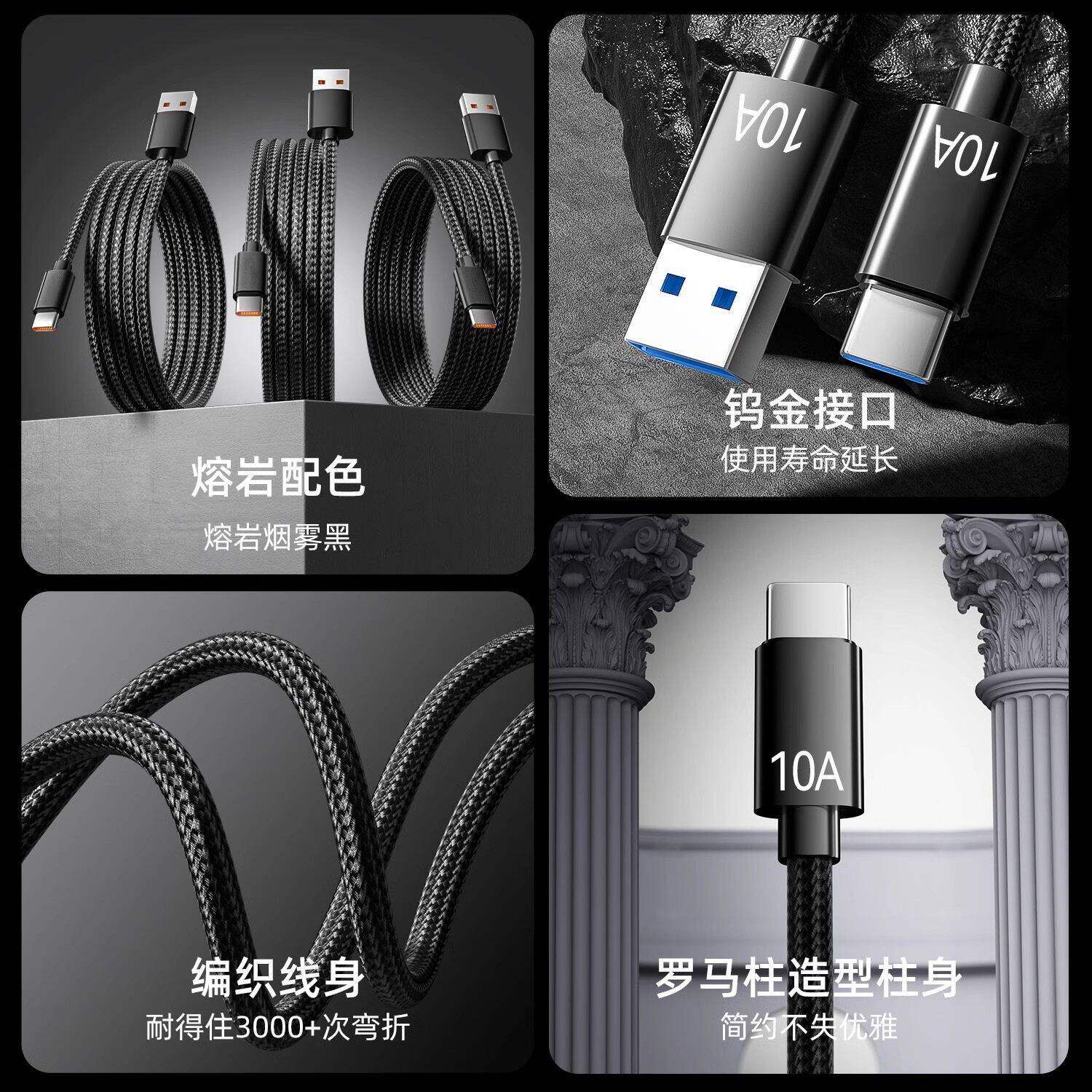 C数据线120W超级快充充电器线适用华为mate60pro荣耀v50小米VIVO通用手机10A编织2米车载 Type 国家3C认证