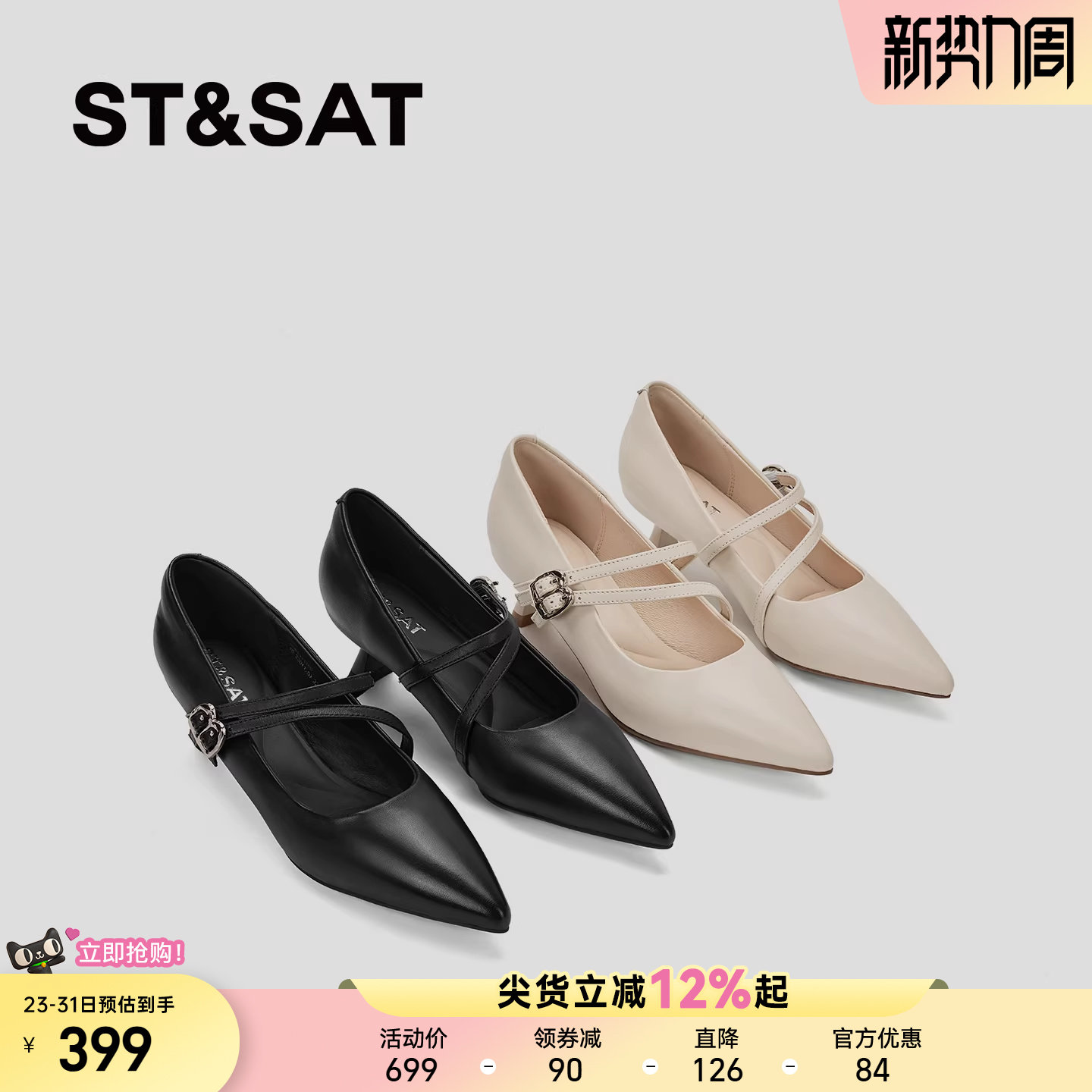 女一字扣带猫跟小跟单鞋 尖头玛丽珍鞋 春 巨舒适羊皮法式 星期六爆款