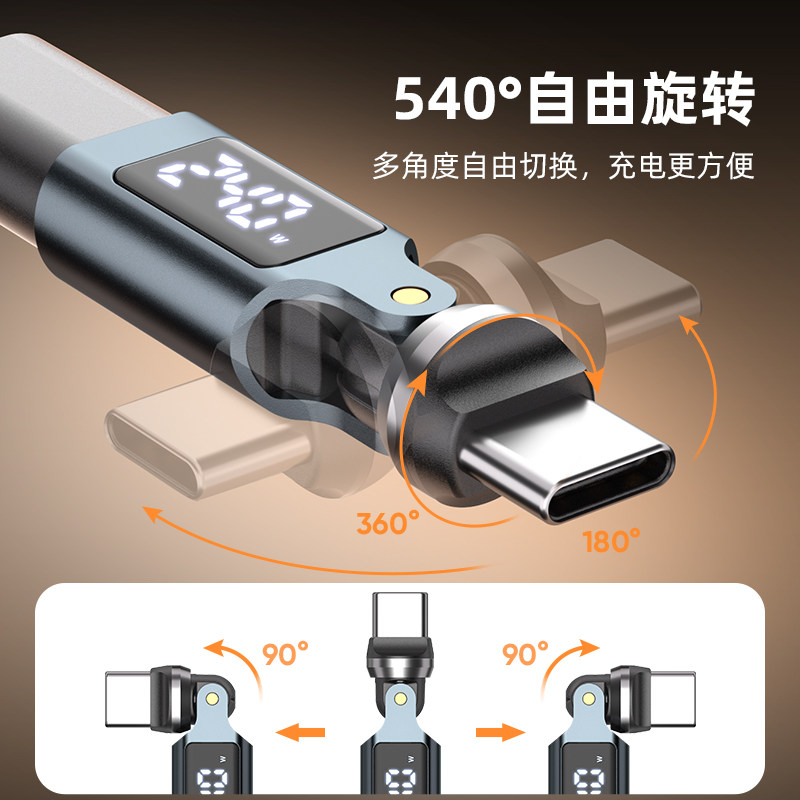 540度旋转pd快充240w数显type c转接头适用华为苹果iPhone17手机平板笔记本电脑多角度充电数据传输转换器口