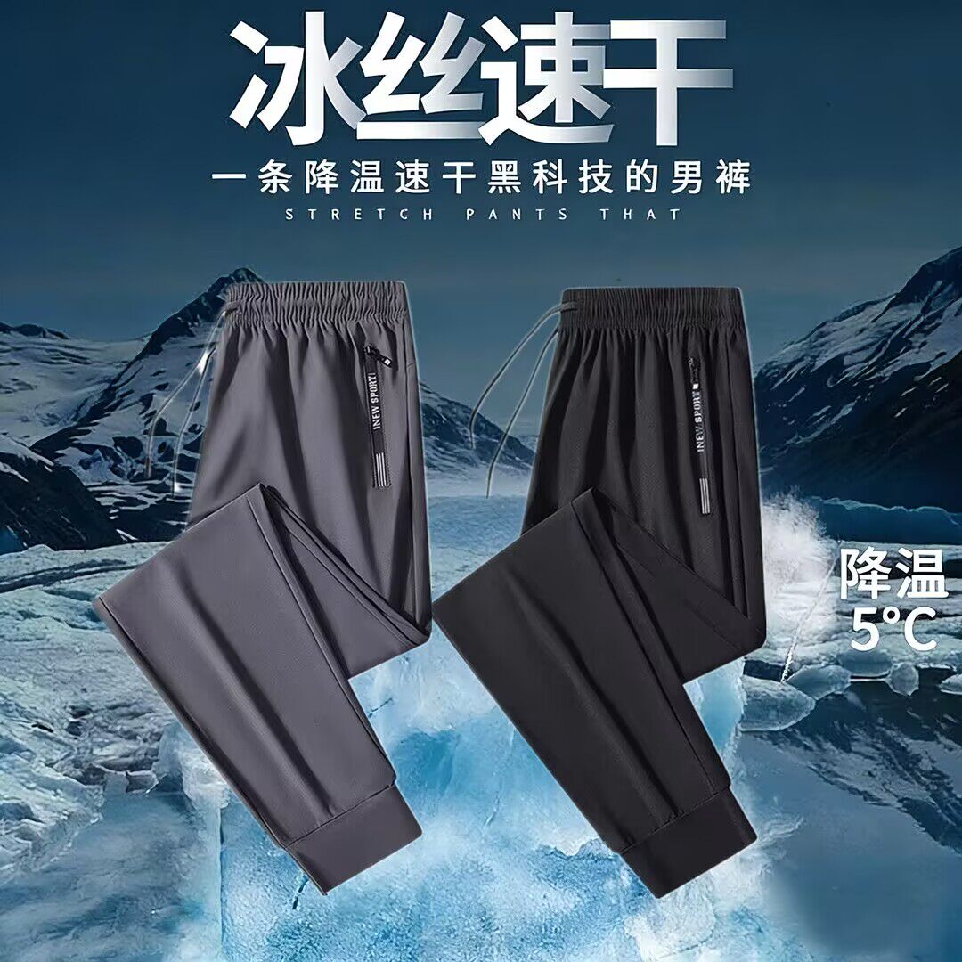 薄款 空调裤 运动裤 冰丝裤 直筒长裤 夏季 速干透气休闲宽松大码 子男士
