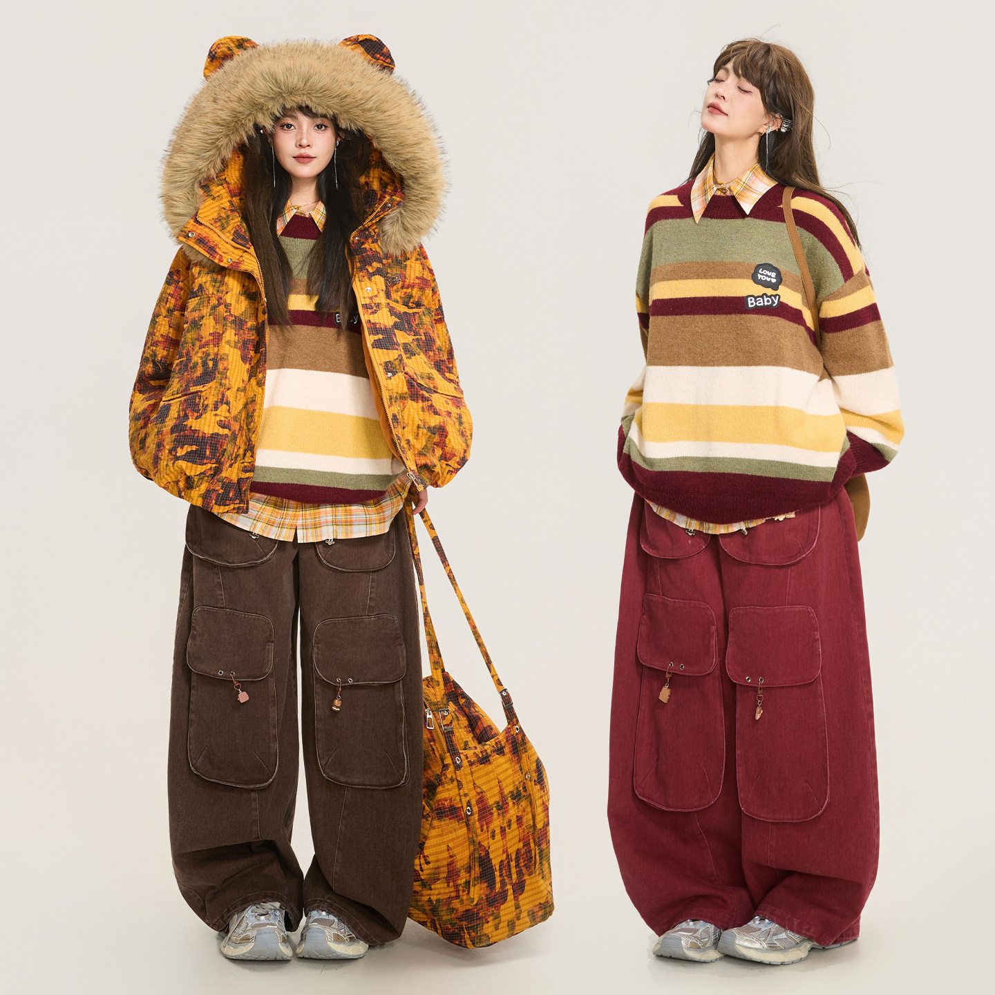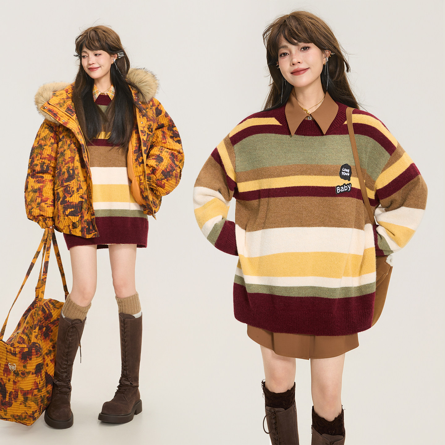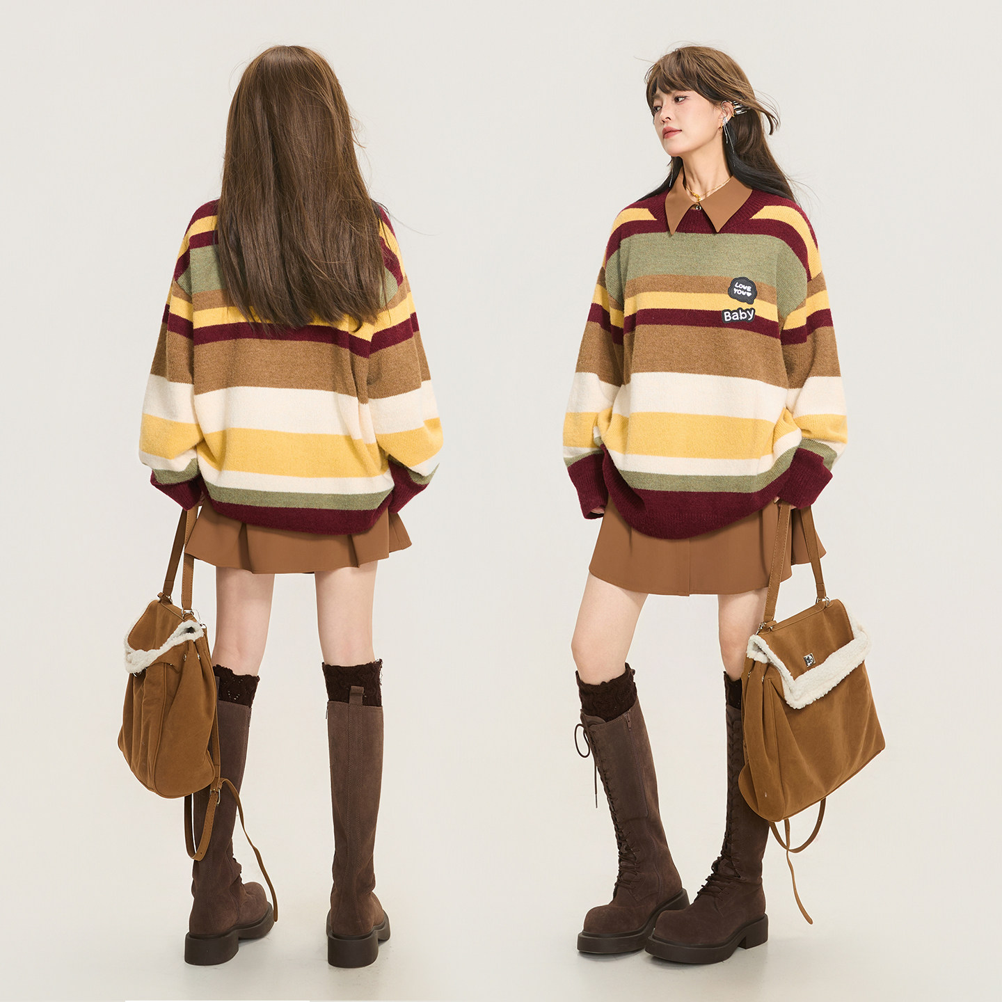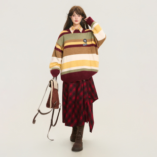 中性风软糯羊毛混纺宽松毛衣 女26春季 KEIKO 学院风撞色条纹针织衫