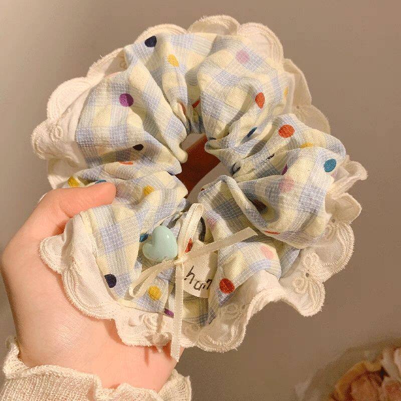 浪漫多巴胺蝴蝶结波点大肠发圈女高级感韩系甜美宽松马尾头绳发饰