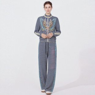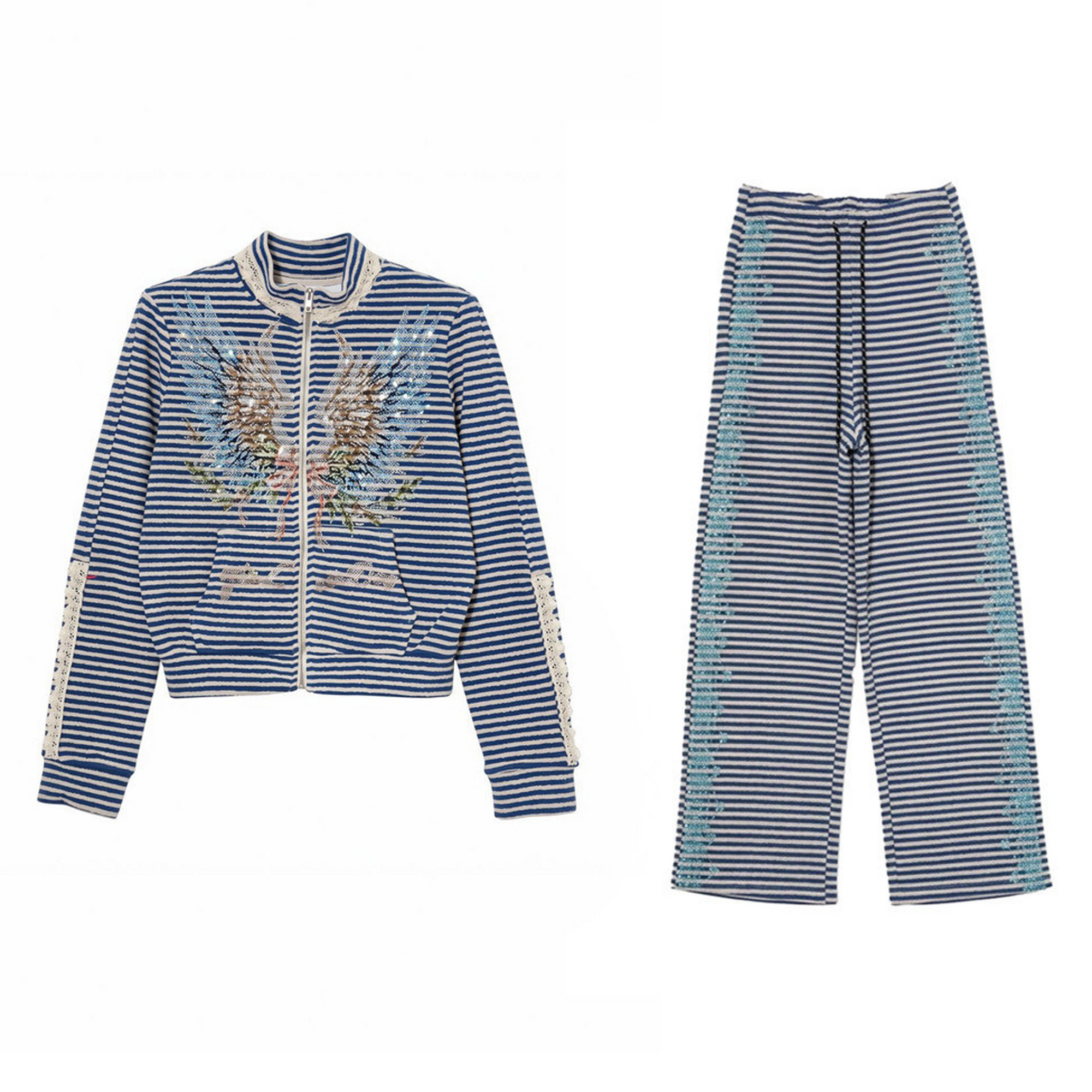 T78A07E1080 套装 TCH潮流时尚 百搭烫钻羽翼条纹立领外套女休闲裤