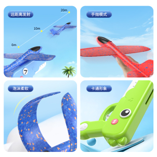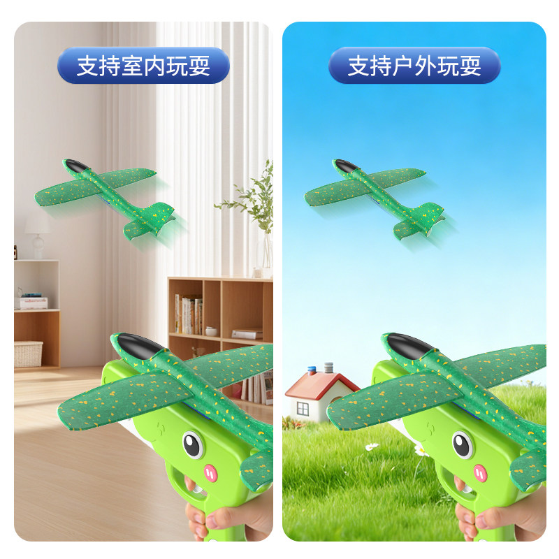 抖音同款 呆萌恐龙弹射泡沫飞机枪儿童户外手抛耐摔滑翔机玩具枪