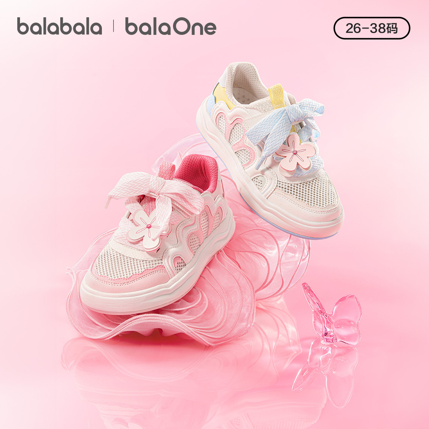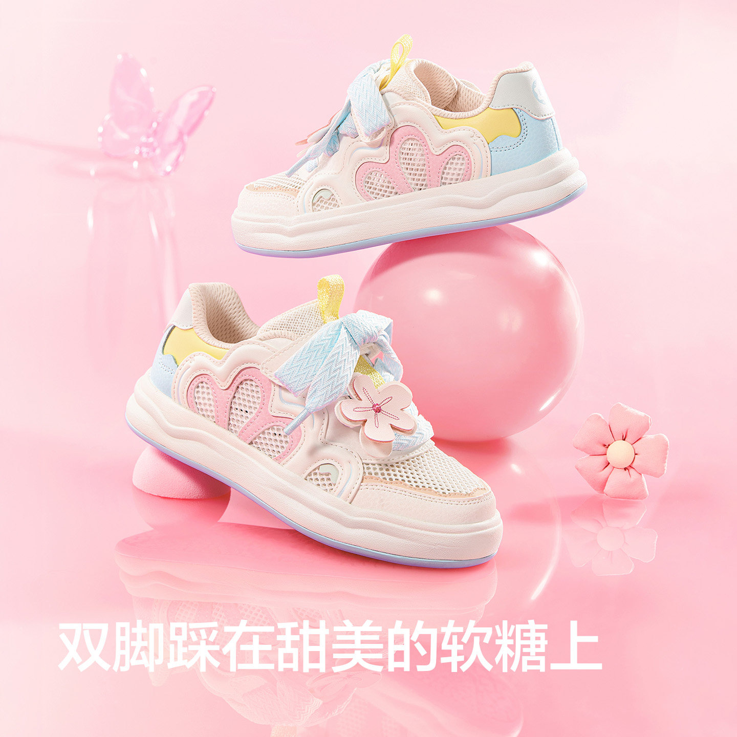 甜美网面透气鞋 巴拉巴拉童鞋 2026夏新款 低帮女童小白鞋 子 儿童板鞋