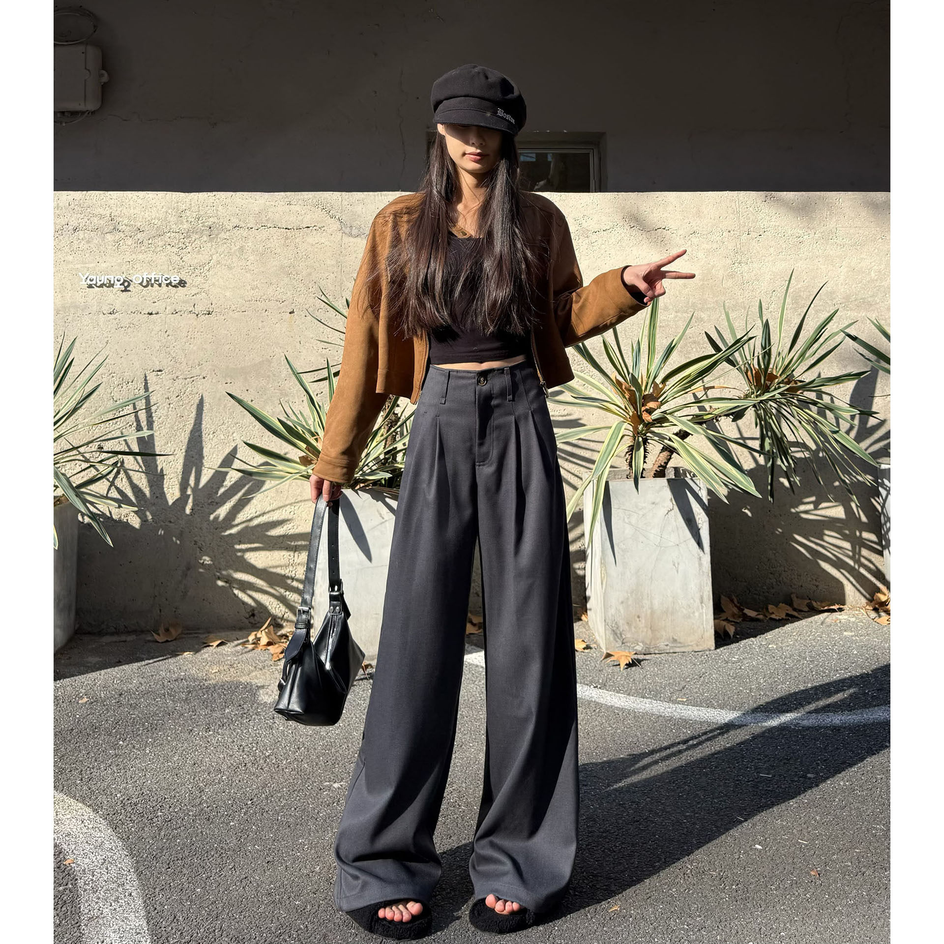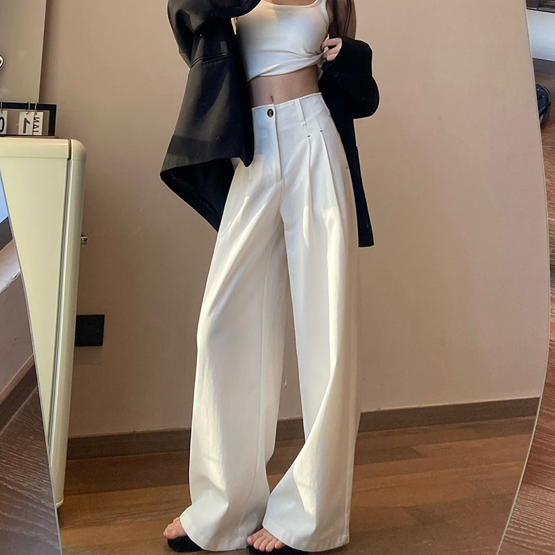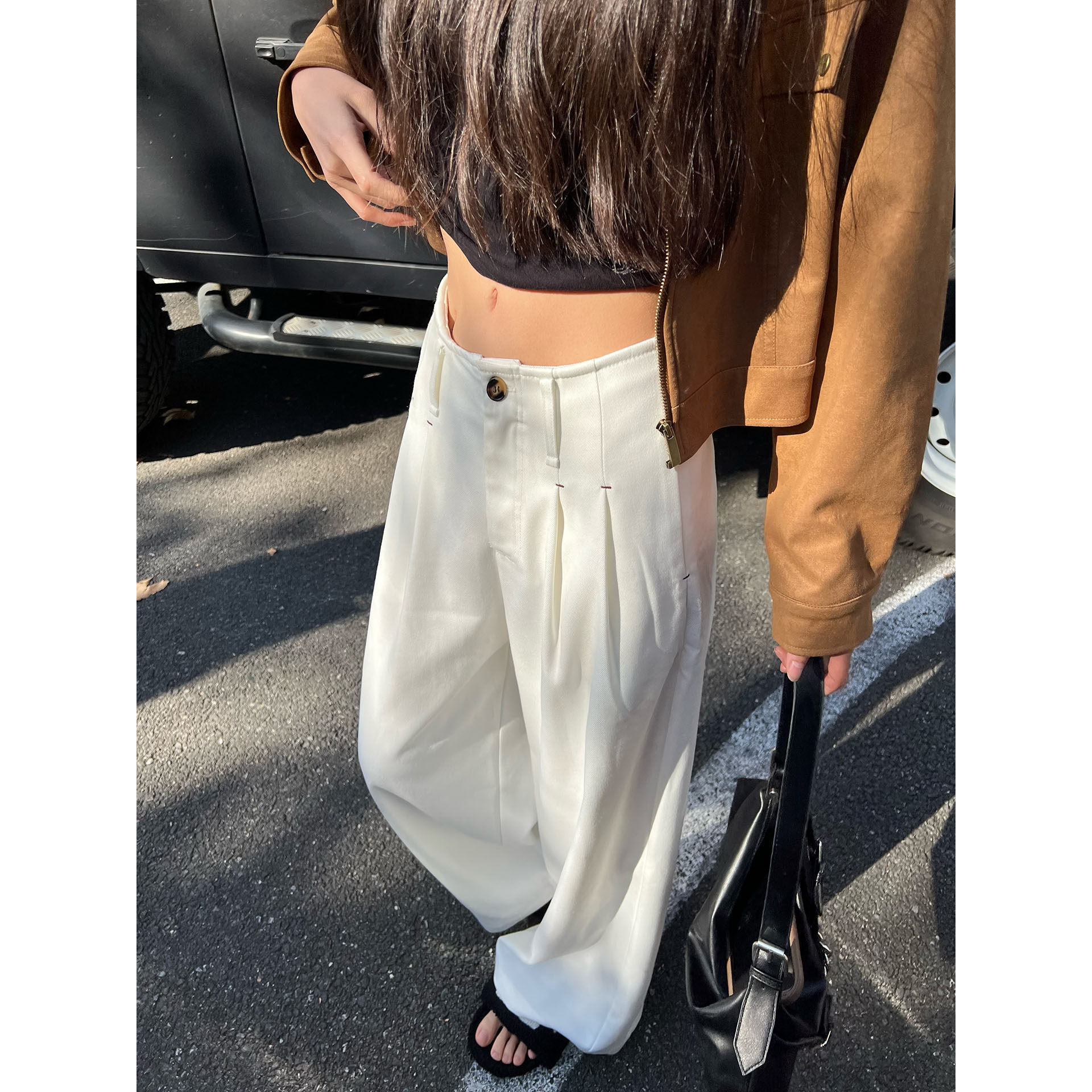 女职业高腰垂感休闲高级感老钱风羊毛直筒裤 阔腿裤 白色西装 春秋季