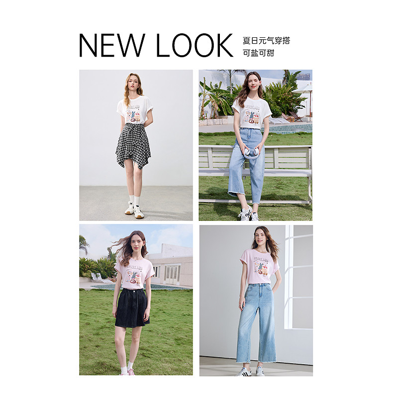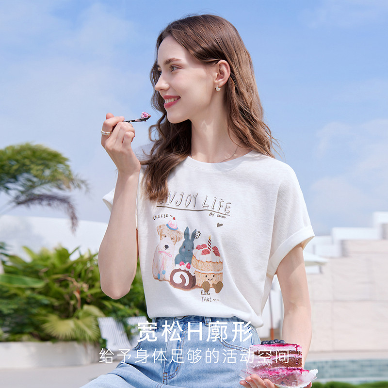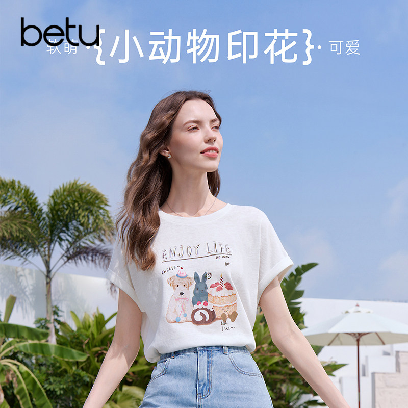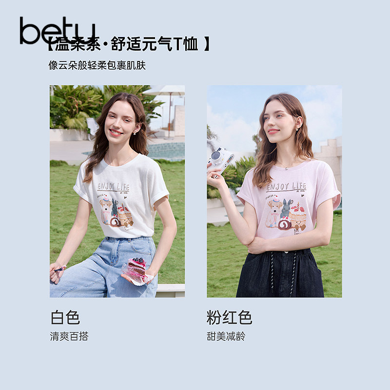 宽松显瘦体恤衫 新款 2026年夏季 betu百图复古童趣印花T恤女短袖
