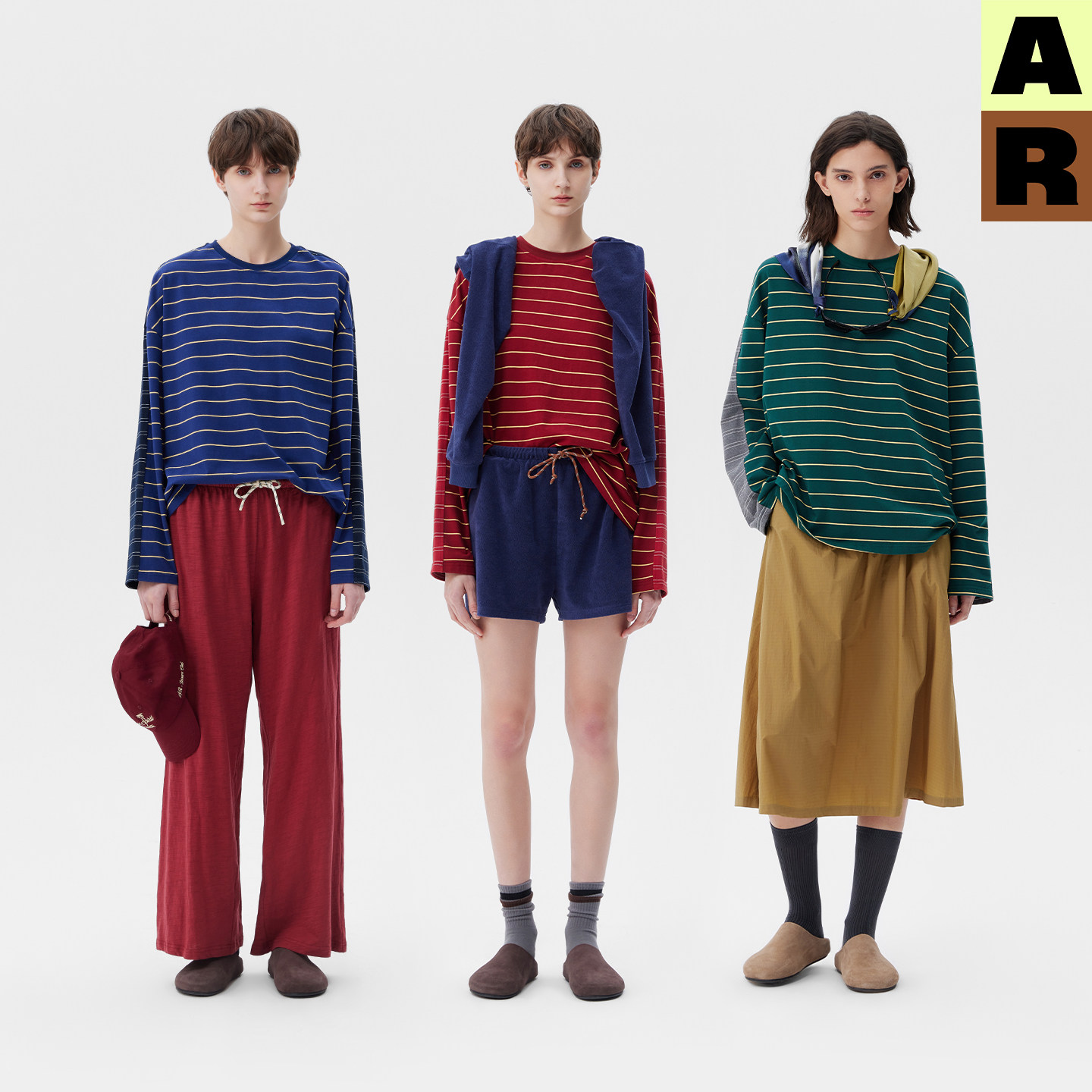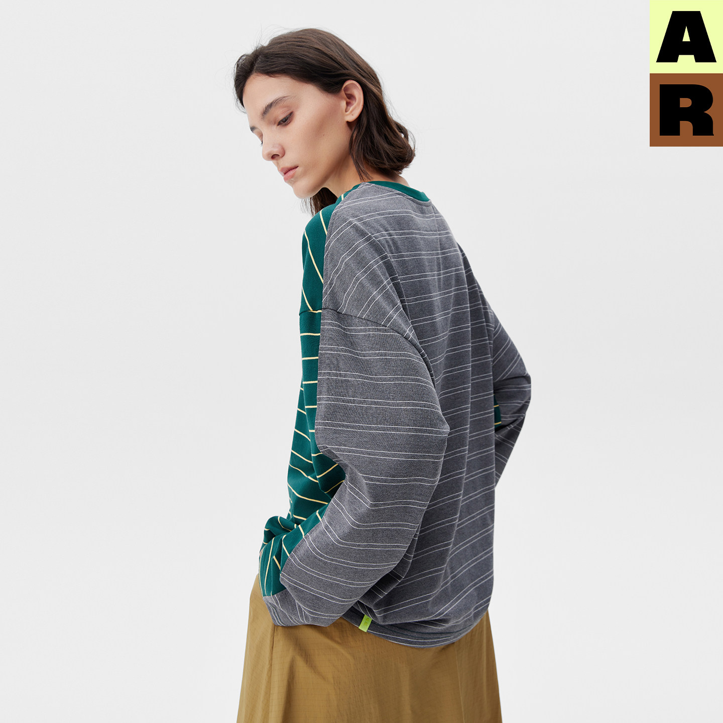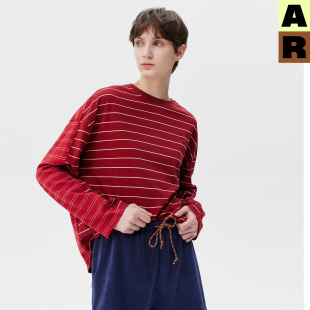 T恤撞色休闲圆领打底衫 AR复古条纹miu系宽松长袖 上衣 现货秒发
