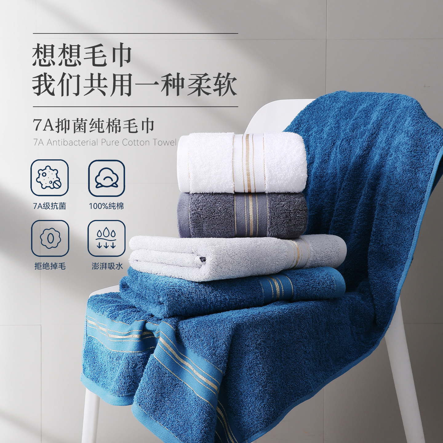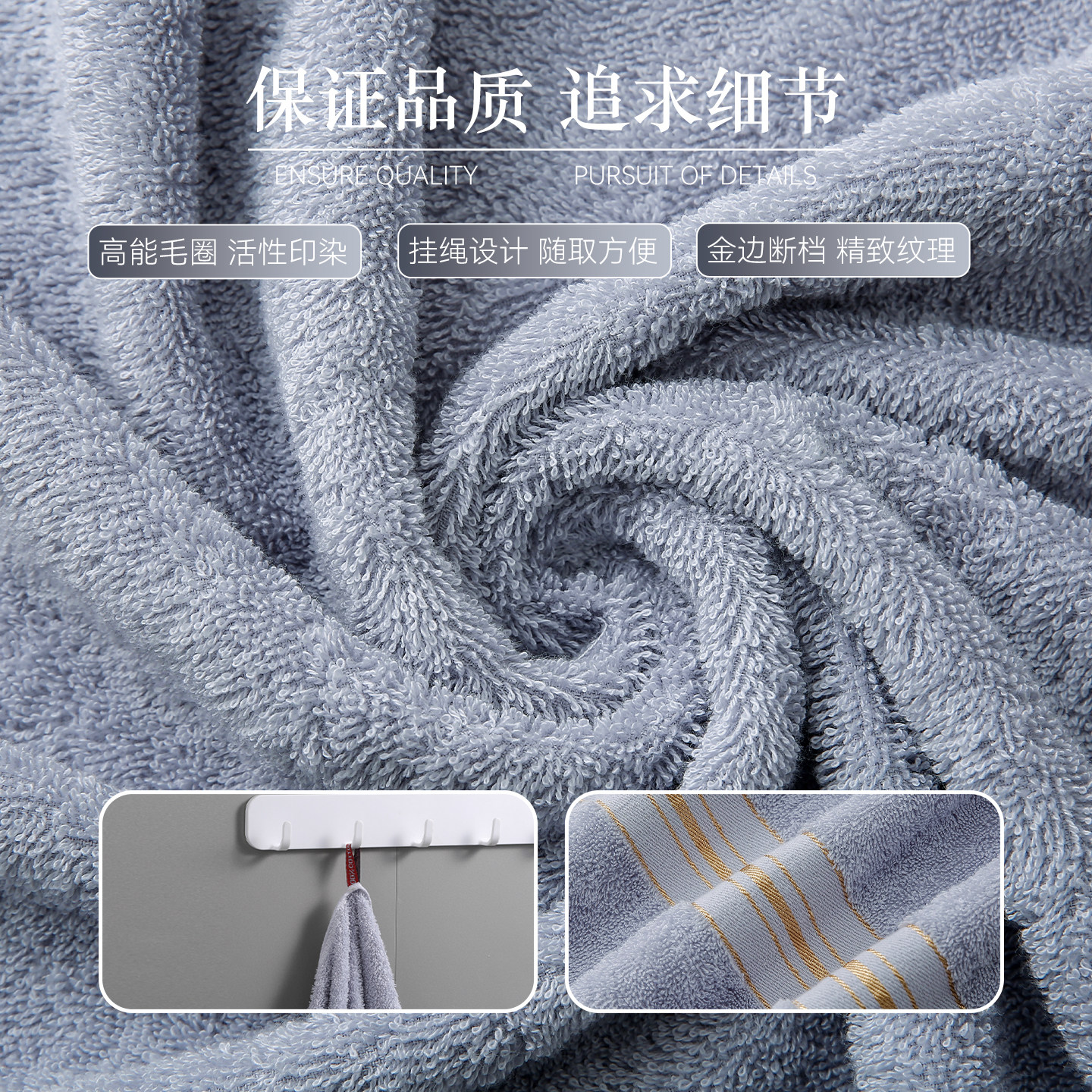 欧美轻奢金边冷色家用高档小浴巾60 120cm长绒棉纯棉柔软吸水男士