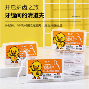 小黄鸭双线牙线棒家庭装 一次性牙线牙签剔牙口腔清新 超细弓形盒装