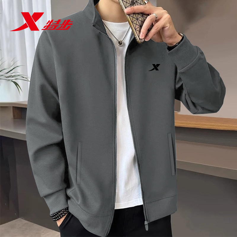 春季 开衫 2026新款 休闲长袖 卫衣 保暖防风夹克男士 特步运动外套男式