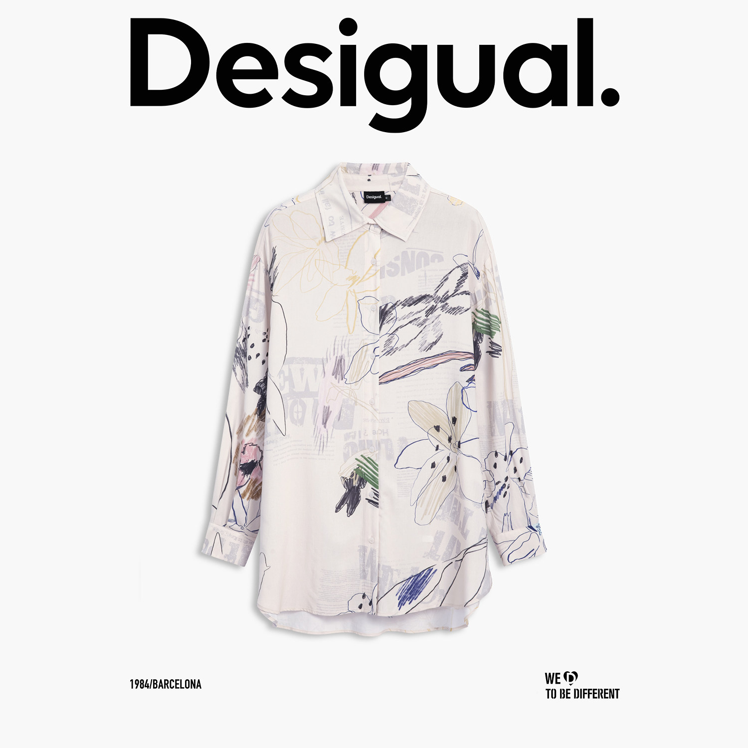 Desigual26春夏新品 手绘印花宽松女士衬衫