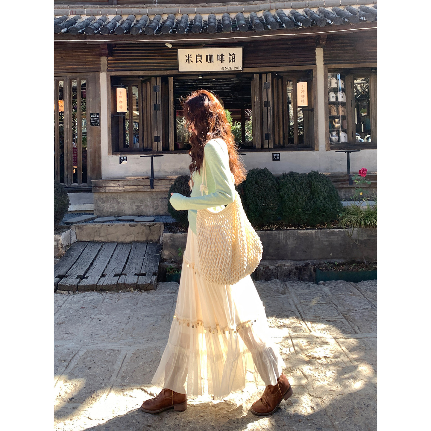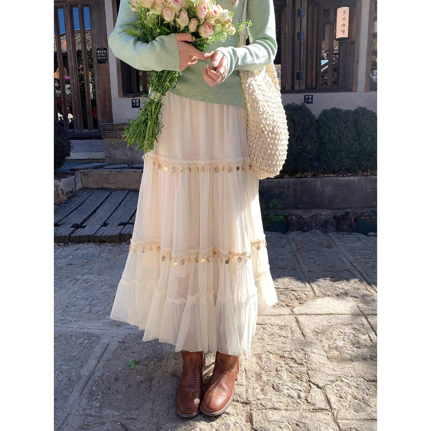 温柔半身裙波西假日网纱长裙 韩系高智感法式 Even一雯 奶油月牙