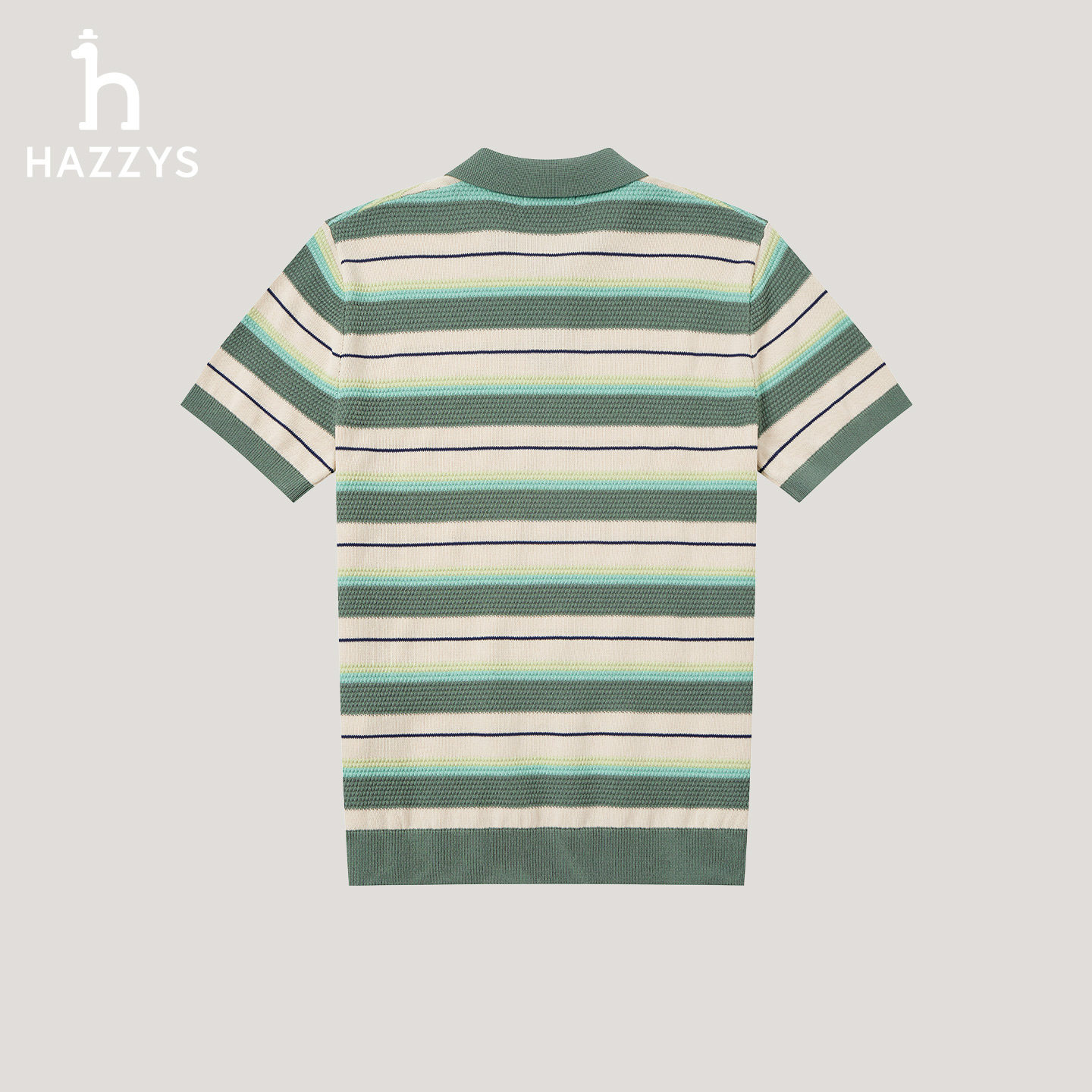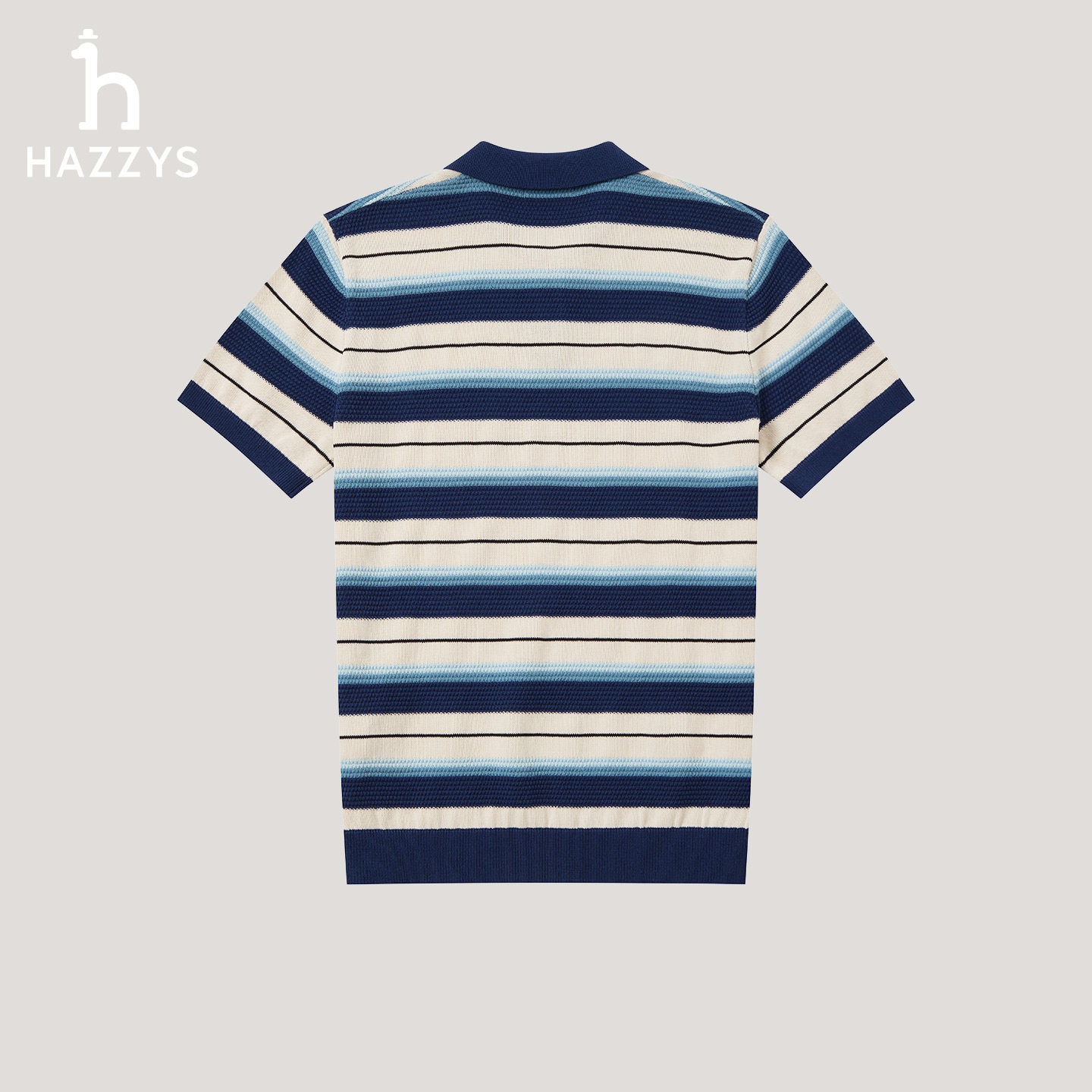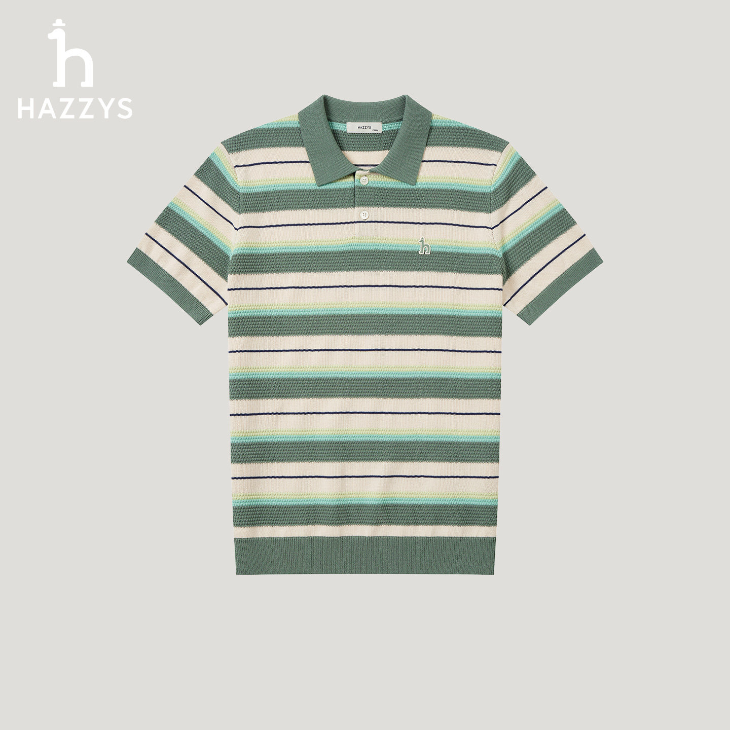 商场同款 POLO针织衫 Hazzys哈吉斯2026夏季 条纹撞色短袖 男 新款