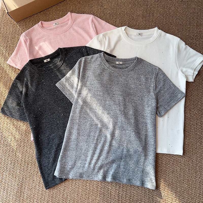 韩系正肩显瘦女士短袖 新款 T恤 「撒银糯糯亮晶晶」春季 020520