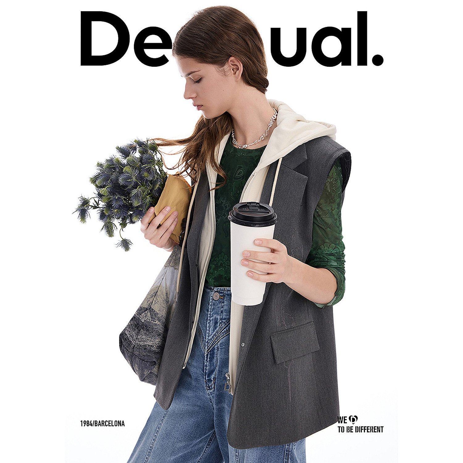 Desigual26春夏新品 外套马甲 宽松拼接连帽卫衣花卉刺绣女式