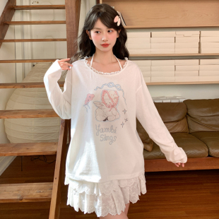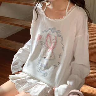 可爱印花防晒罩衫 T恤女春新款 上衣 白色长袖 森女部落甜美薄款
