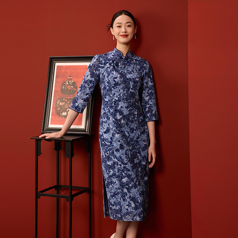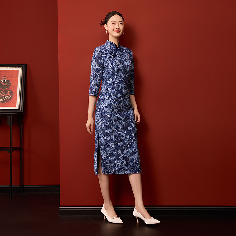 国风旗袍秋高端蕾丝连衣裙DC050503 黛玛诗改良新中式 商场同款