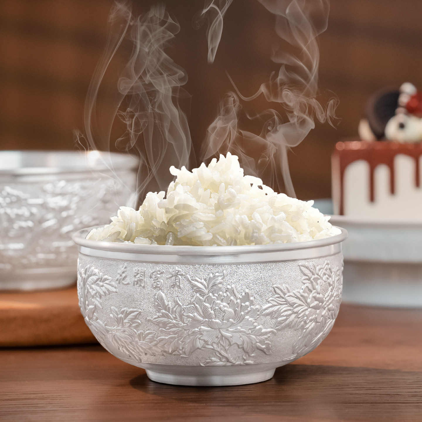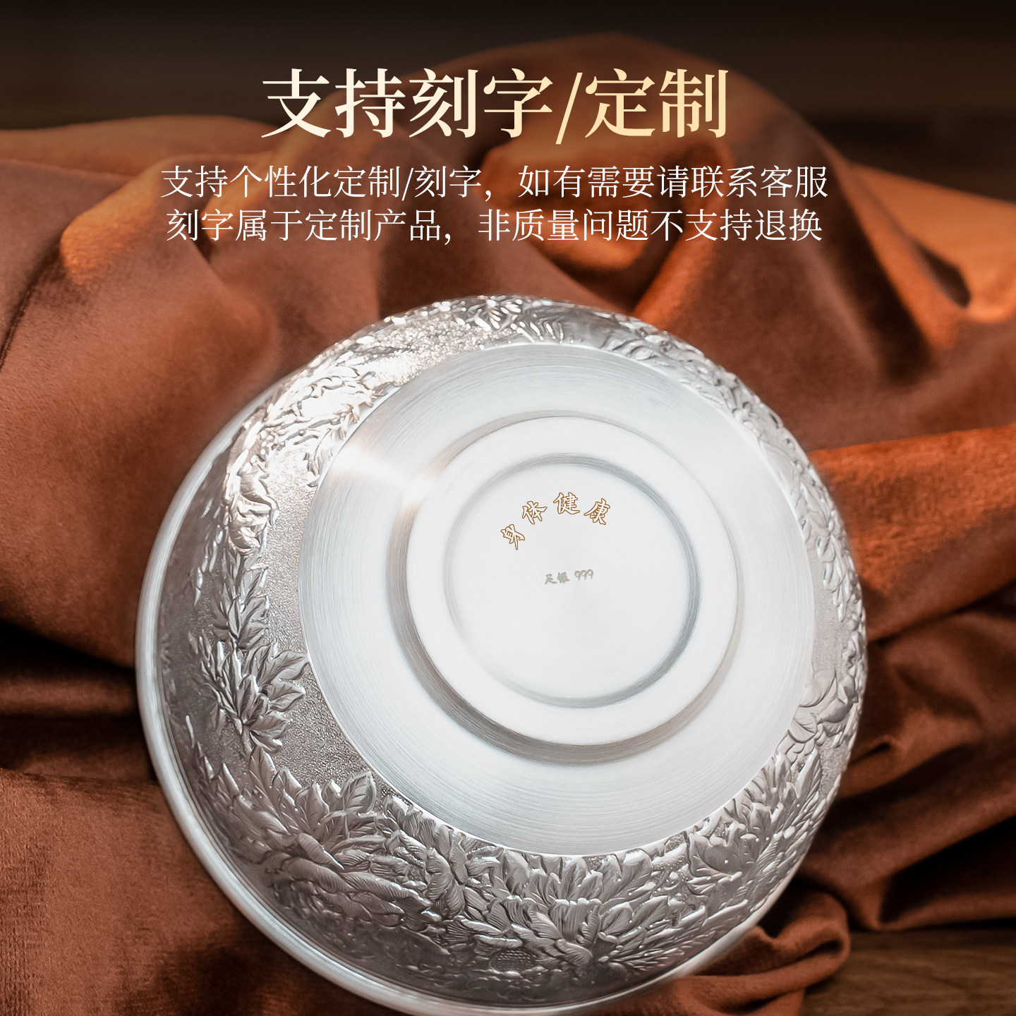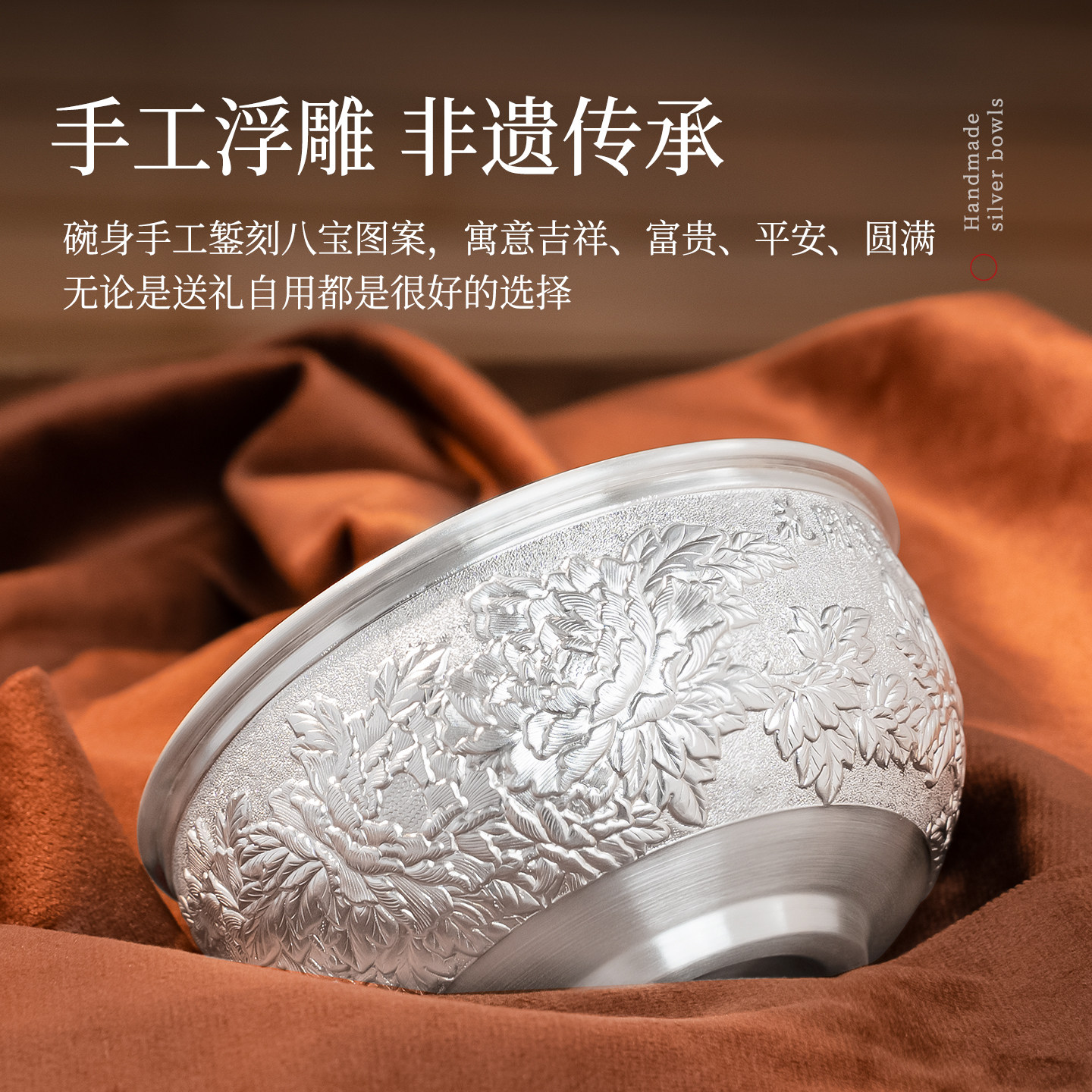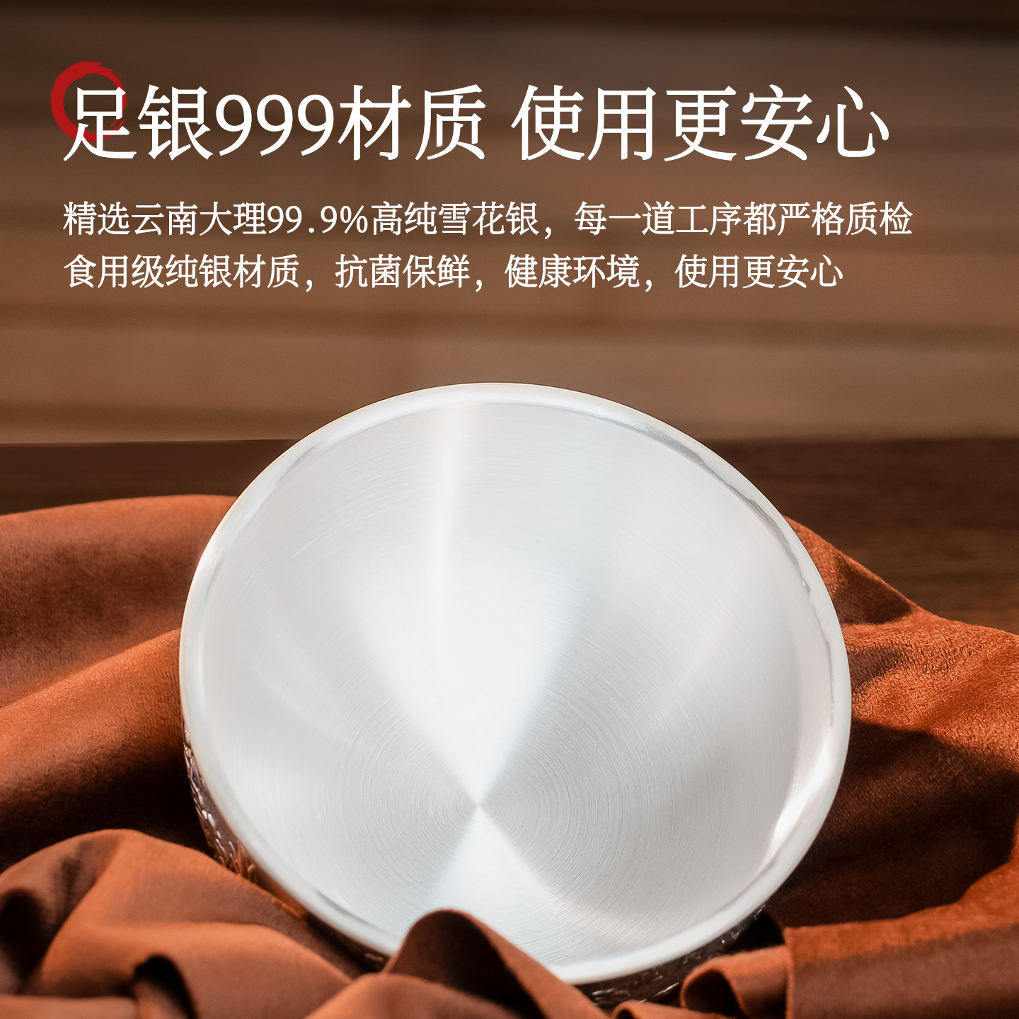 银碗999纯银家用雪花银碗三件套食用级正品 足银餐具碗筷勺套装