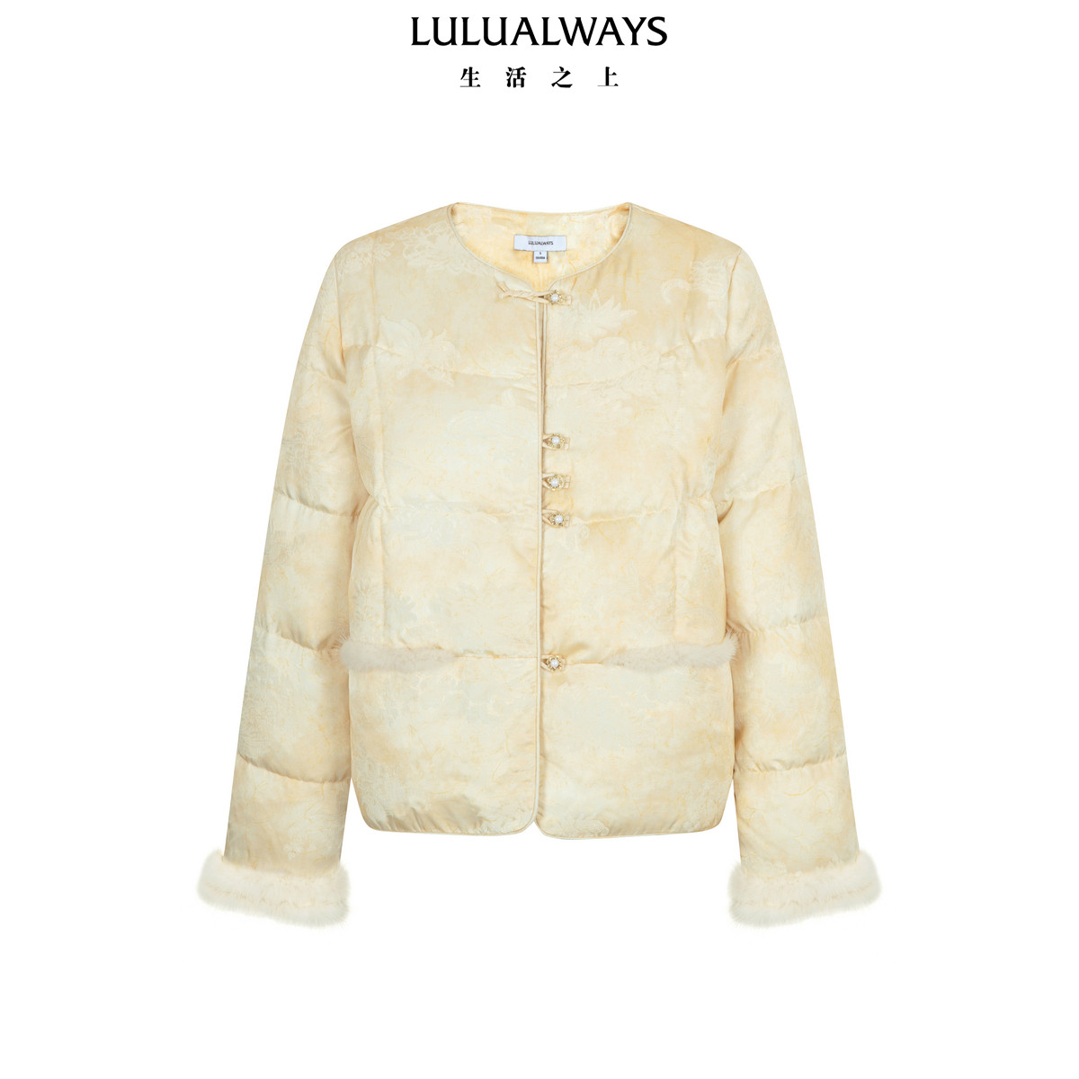 雪中飞2025秋冬新款 轻薄圆领羽绒服休闲外套宽松米白A 女士中长款