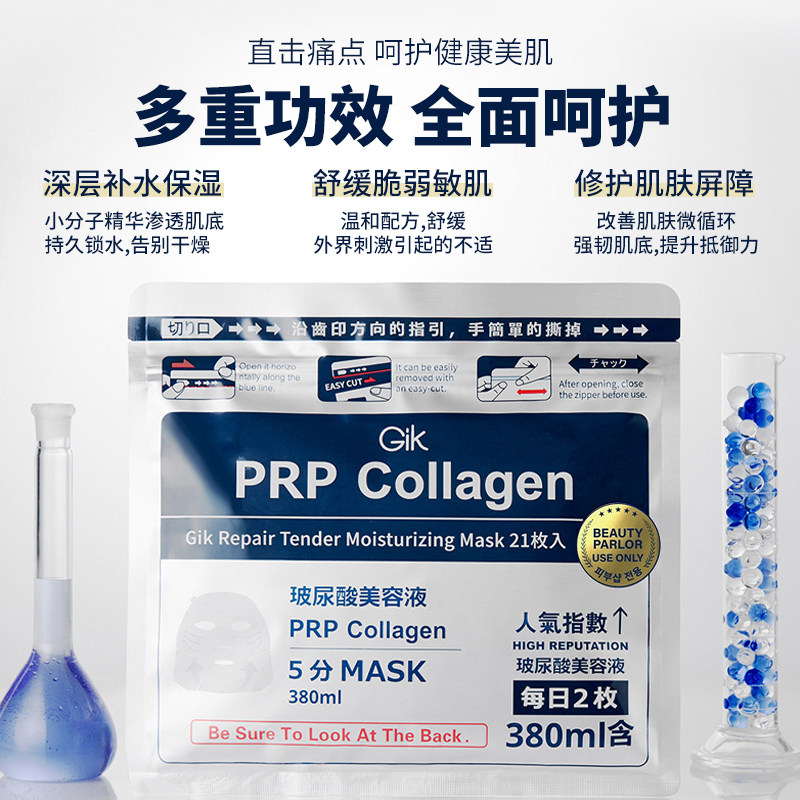 gik面膜玻尿酸胶原修护42片保湿 官方旗舰店 舒缓韩国补水急救正品
